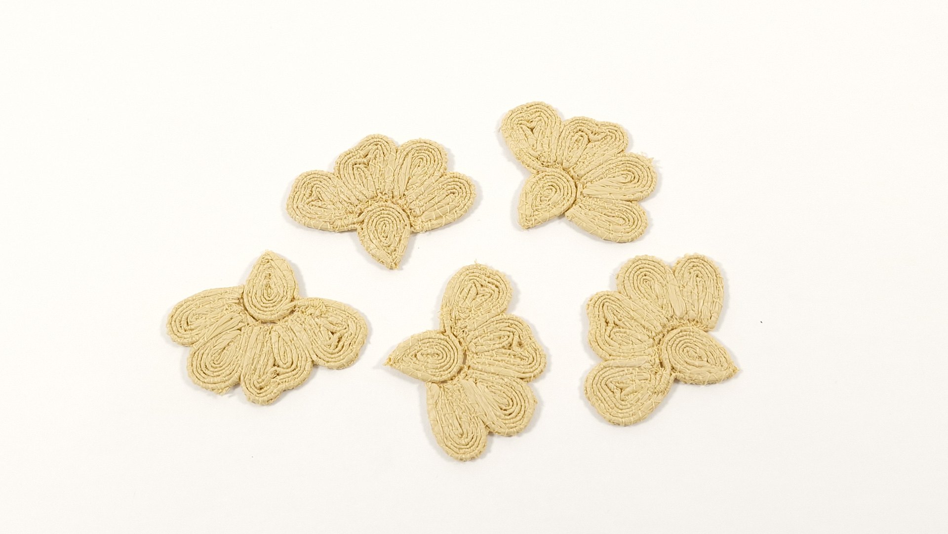 Set de aplicatii decorative din rafie nature VAL264, potrivite pentru accesorizarea sacourilor, bluzelor, pantalonilor, fustelor, gecilor. Setul este format din 5 butoni.
