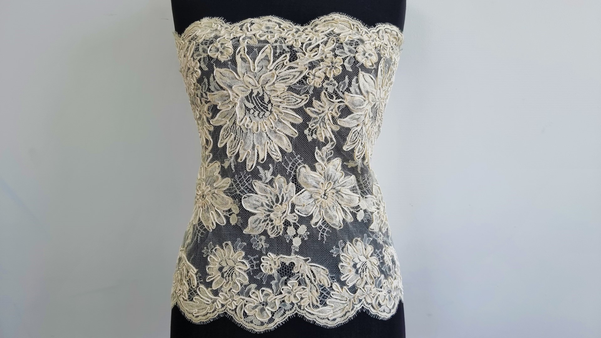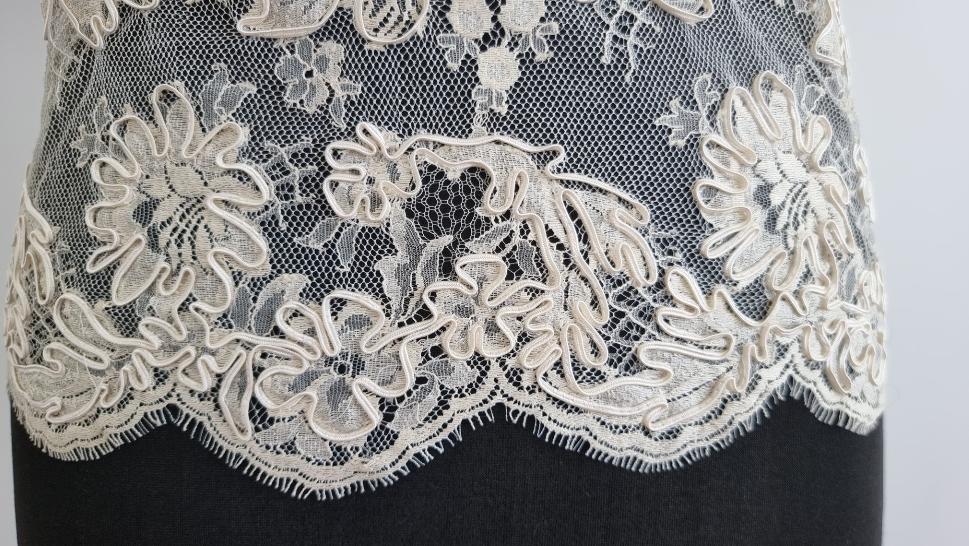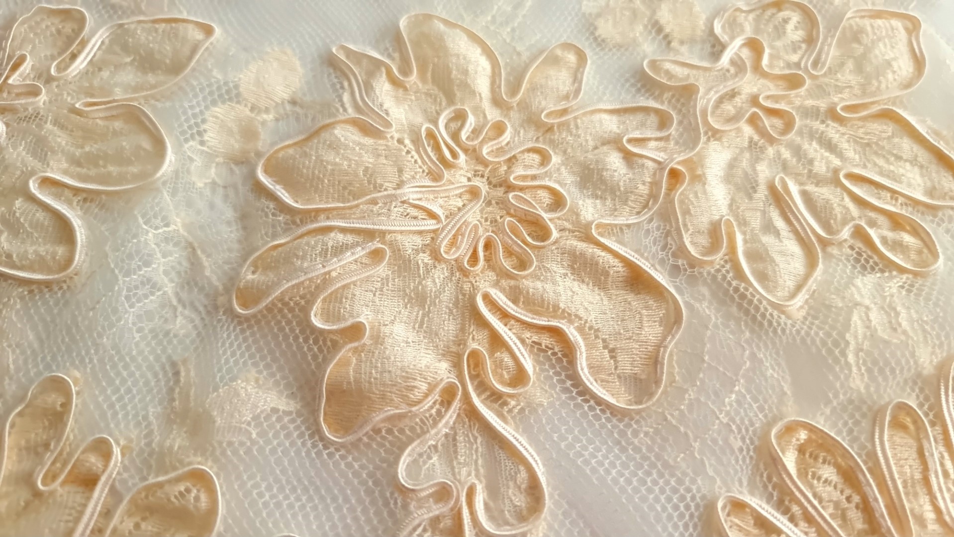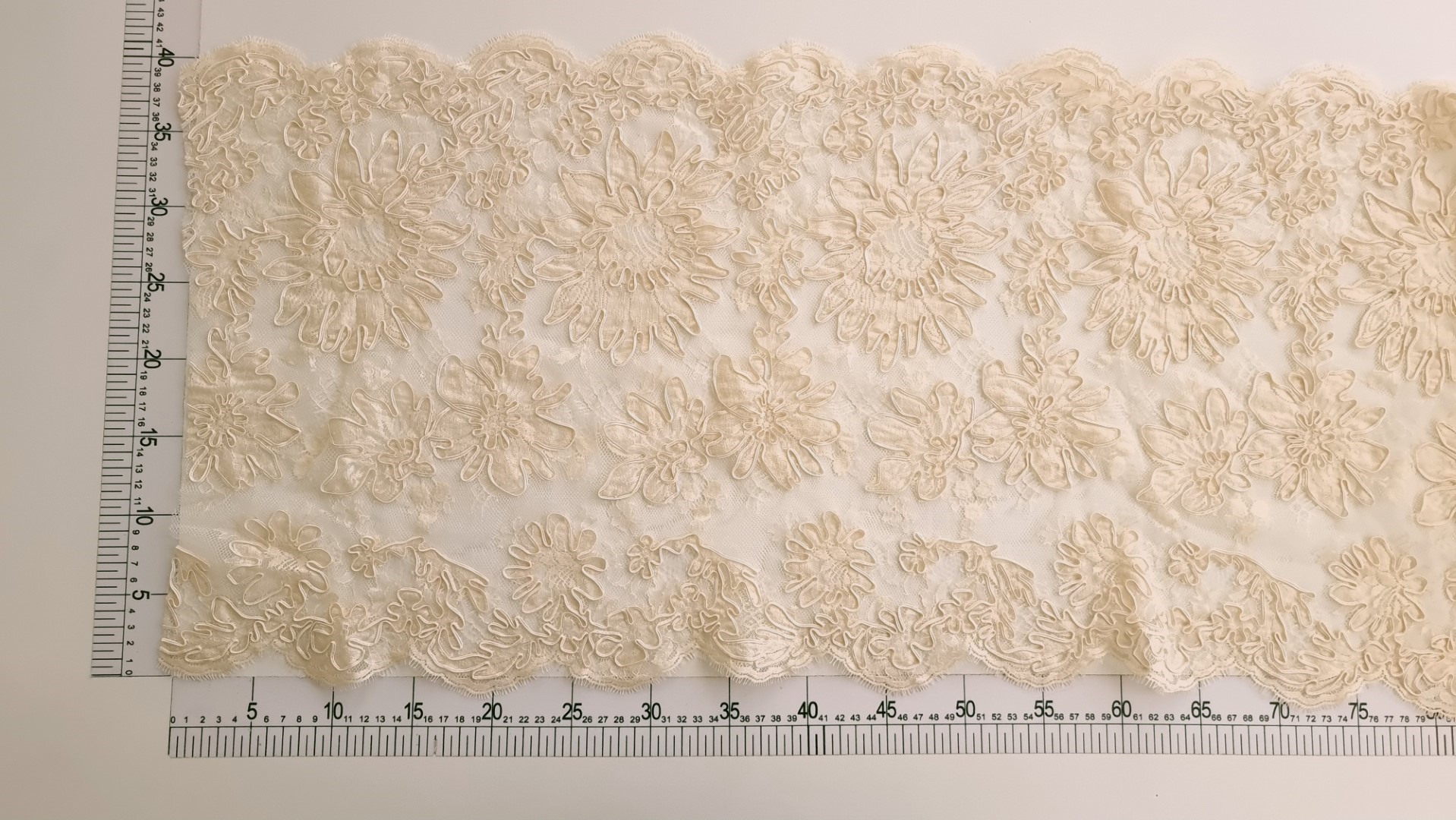 Caracteristici Dantela frantuzeasca crem brodata cu snur Solstiss: