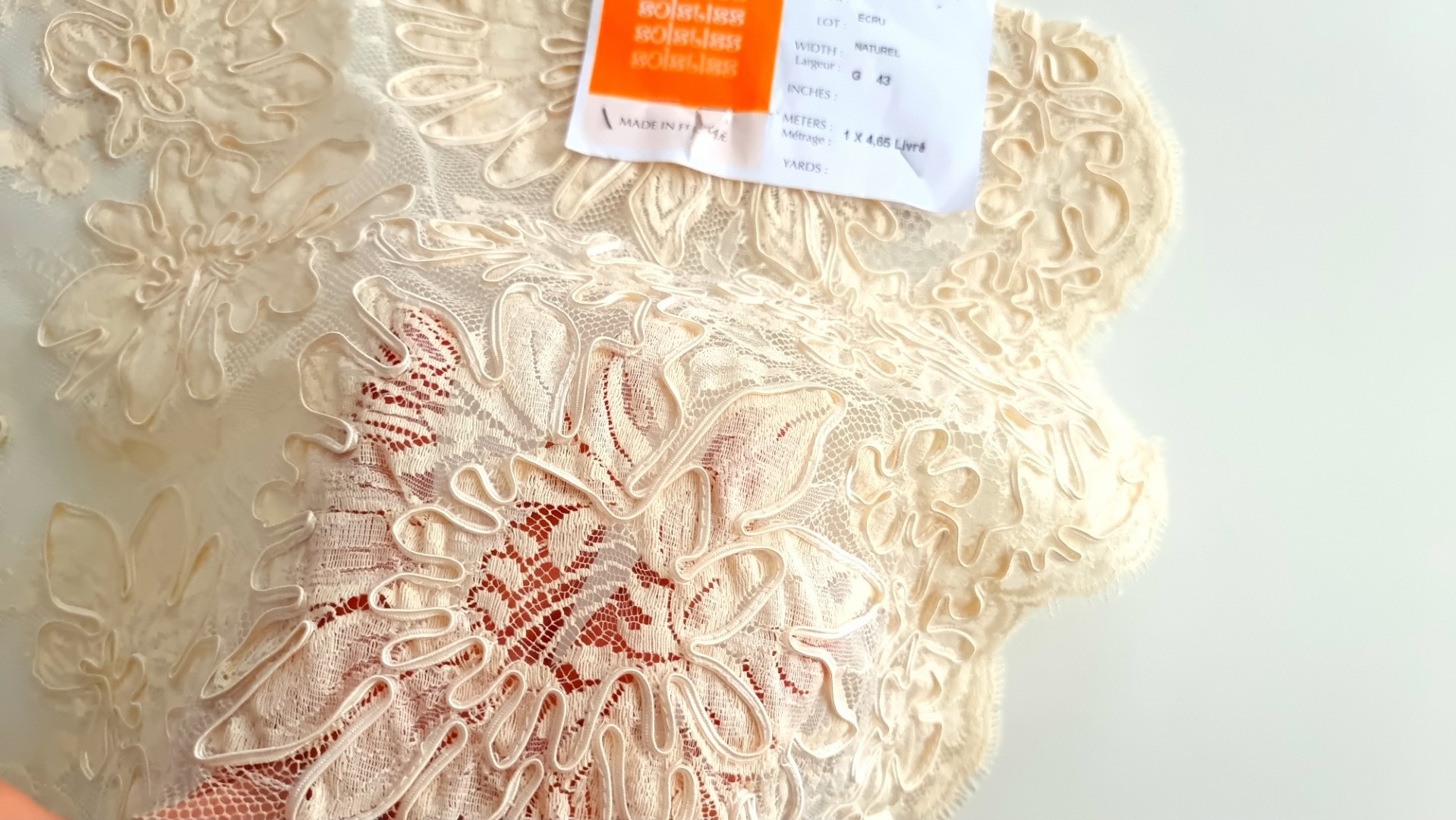 Dantela frantuzeasca crem brodata cu snur Solstiss , fina, delicata, de inalta calitate.