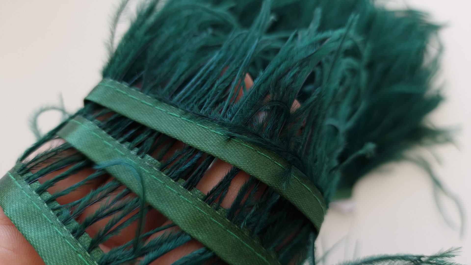Fulgii sunt naturali si cusuti pe o panglica bie din saten.