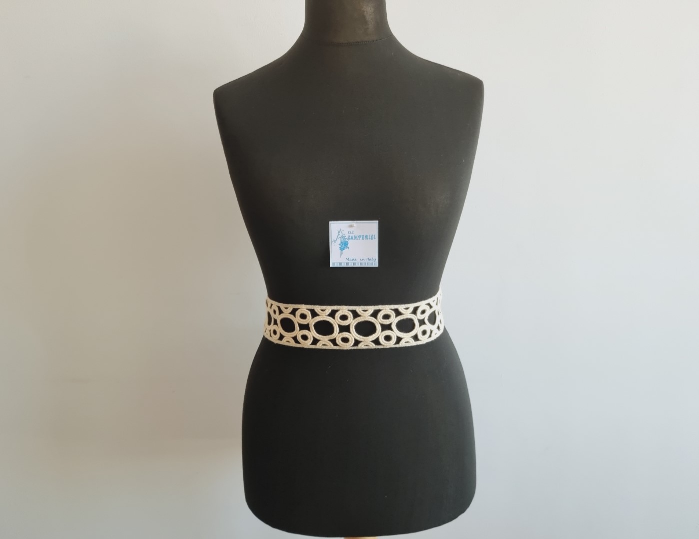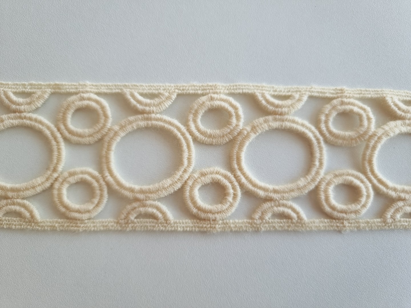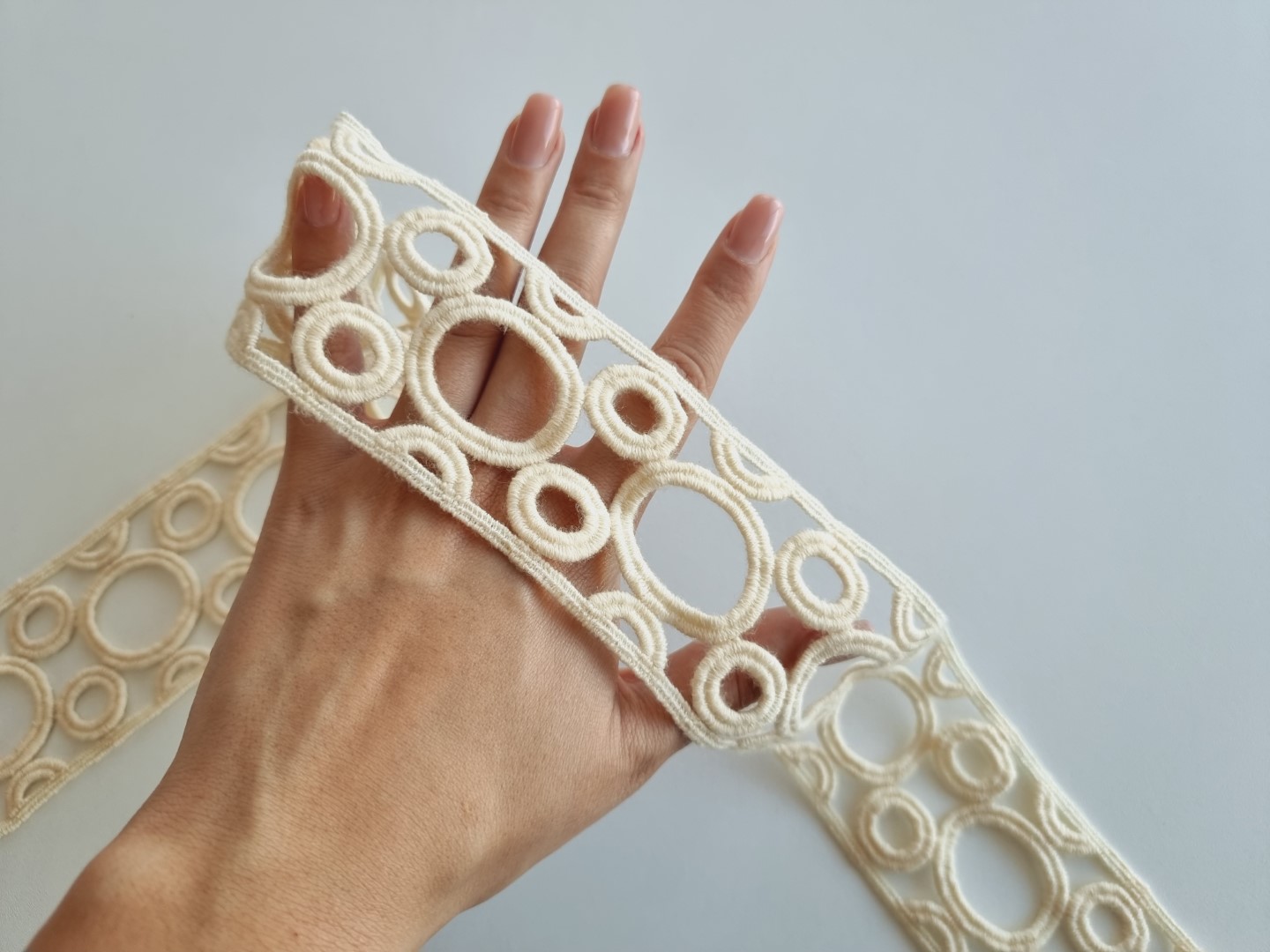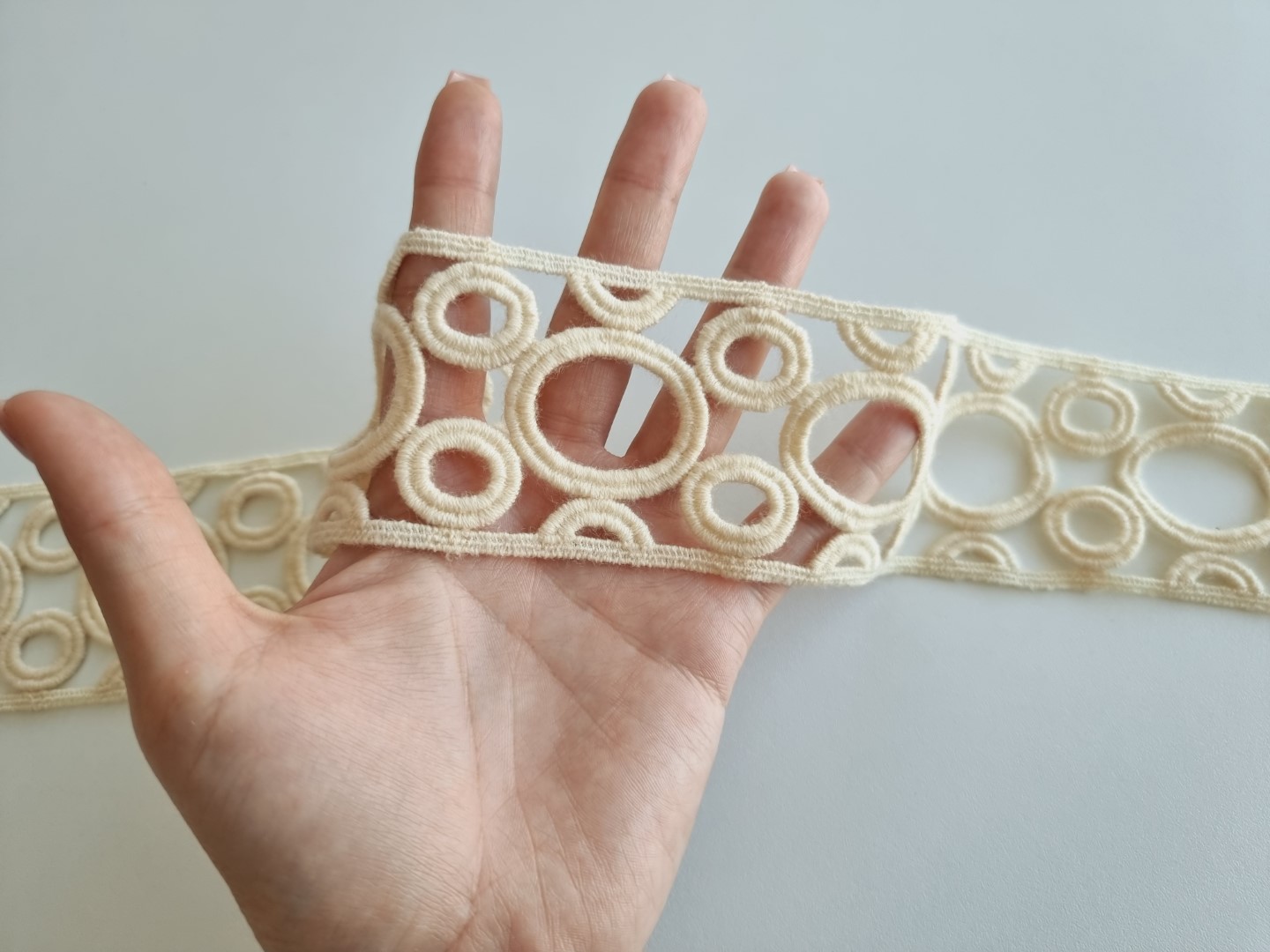 Aplicatie decorativa brodata din lana nature cu latime 6 cm, fabricata in Italia.