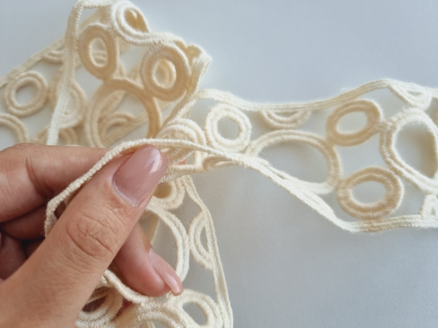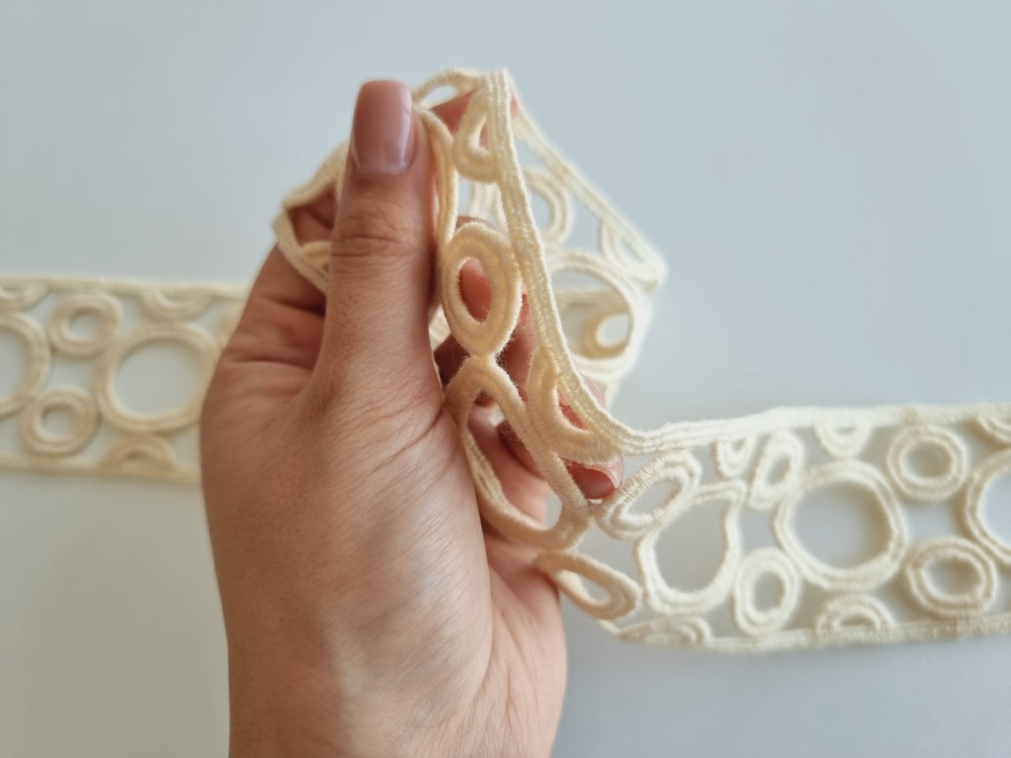 Caracteristici Aplicatie decorativa brodata din lana nature cu latime 6 cm: