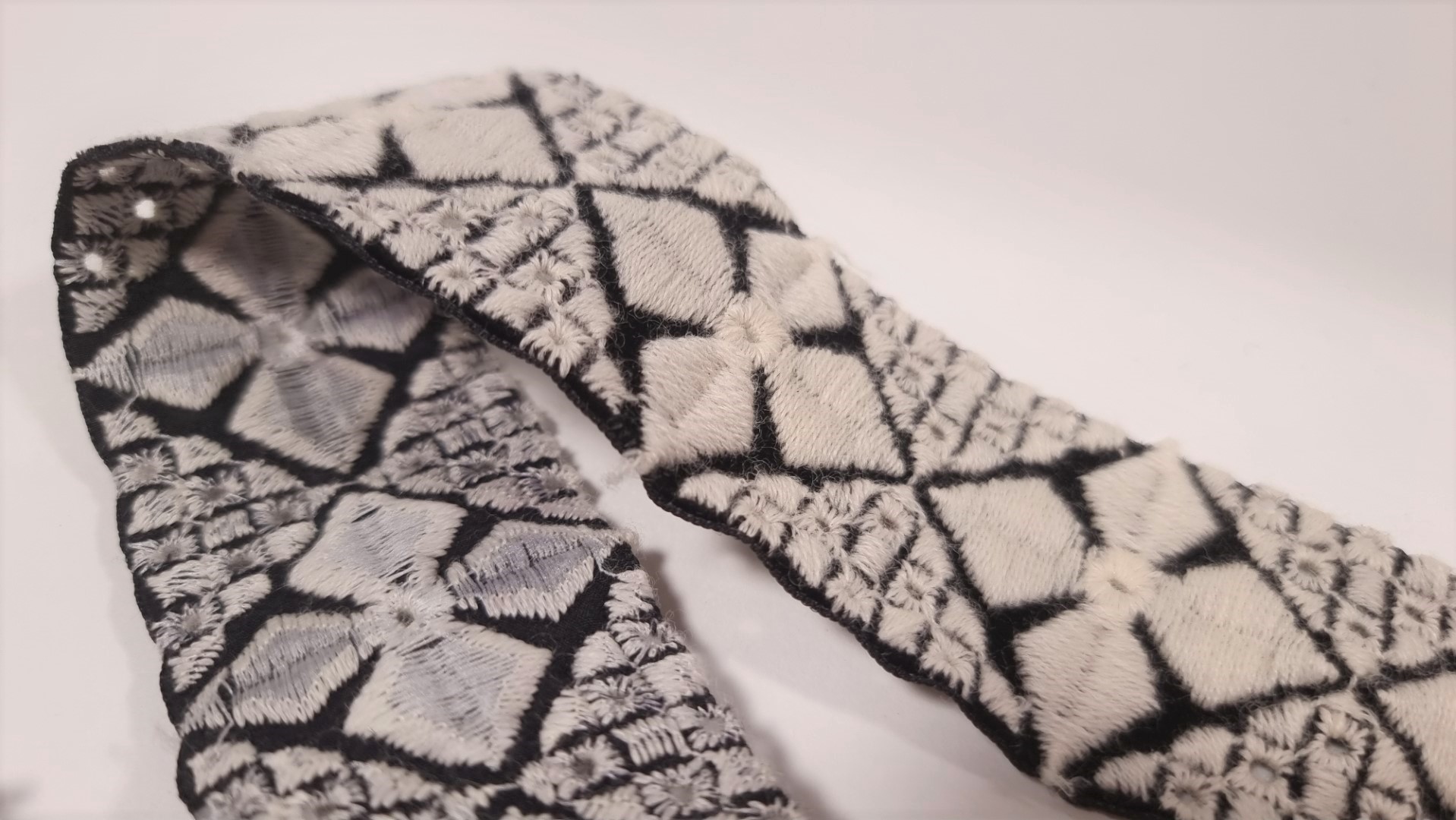 Aplicatie decorativa din lana fabricata in Italia – latime 4,5 cm, model deosebit si calitate inalta.