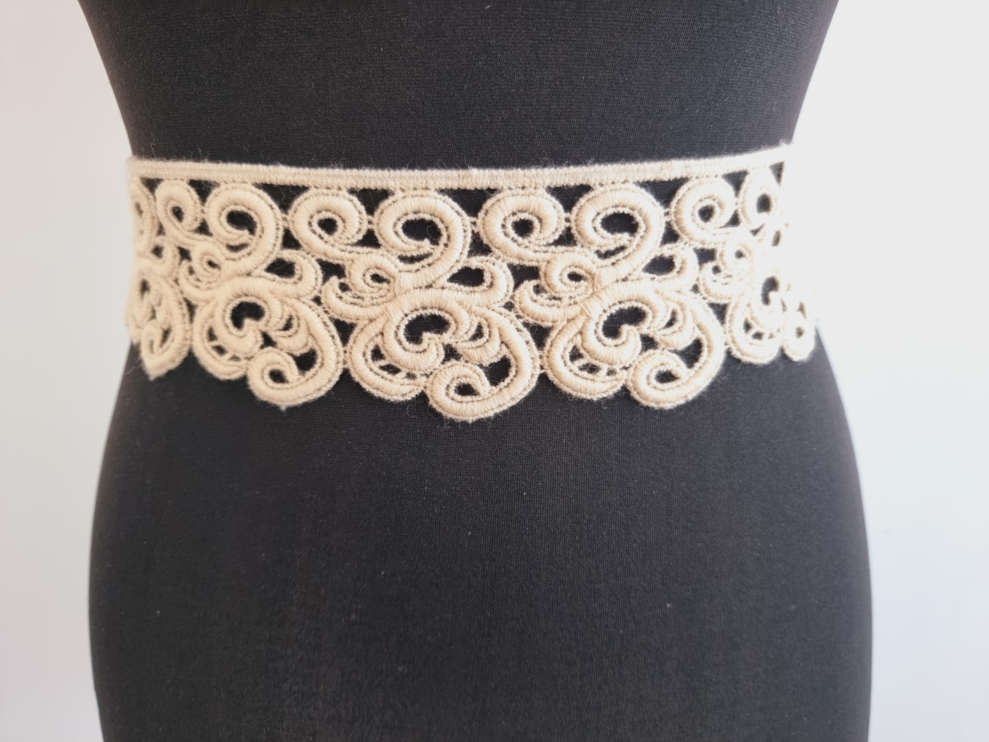 Banda decorativa subtire din lana ivoire, fabricata in Italia.