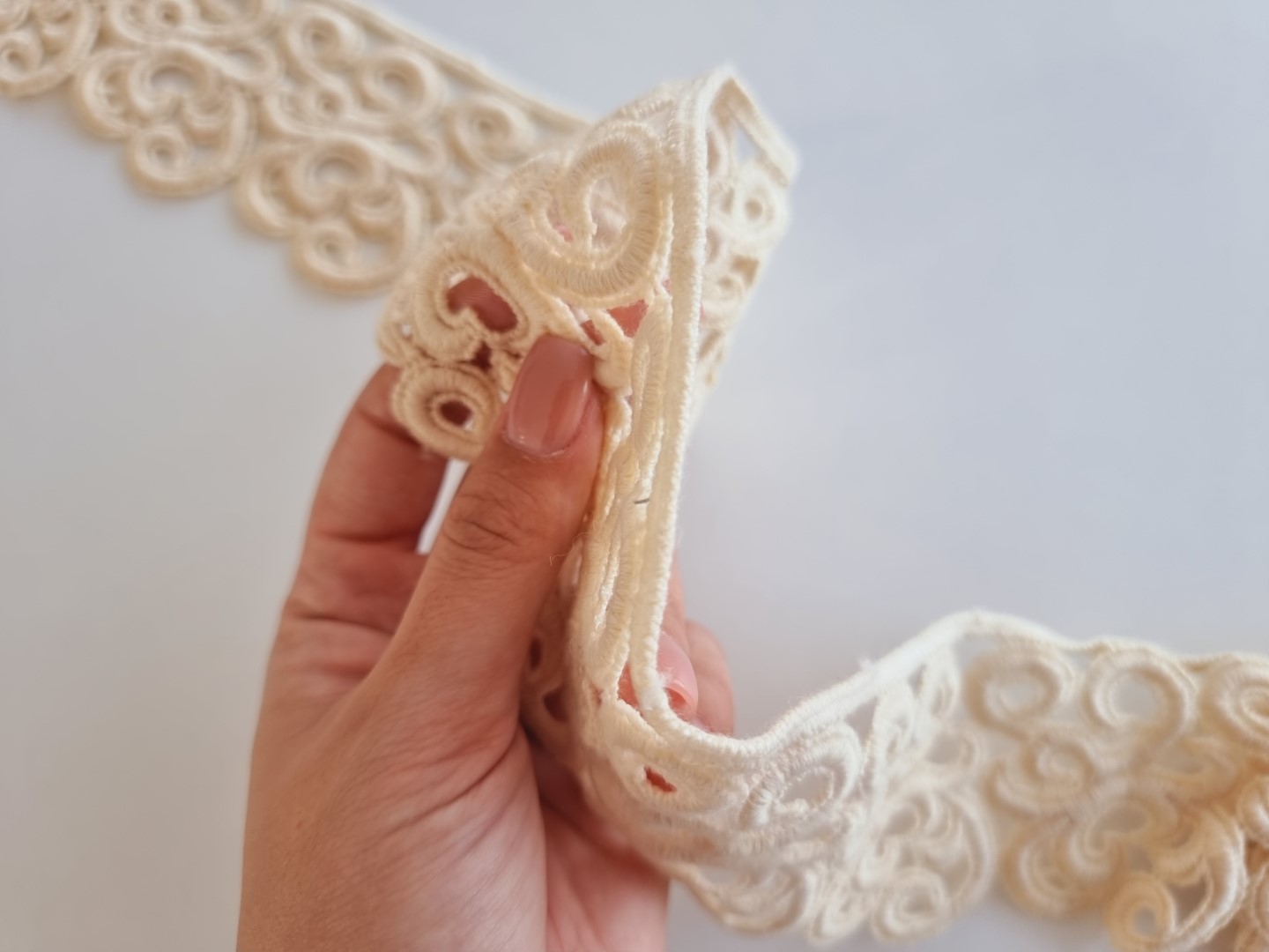 Caracteristici Banda decorativa subtire din lana ivoire:
