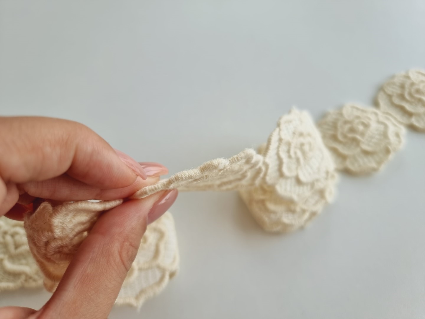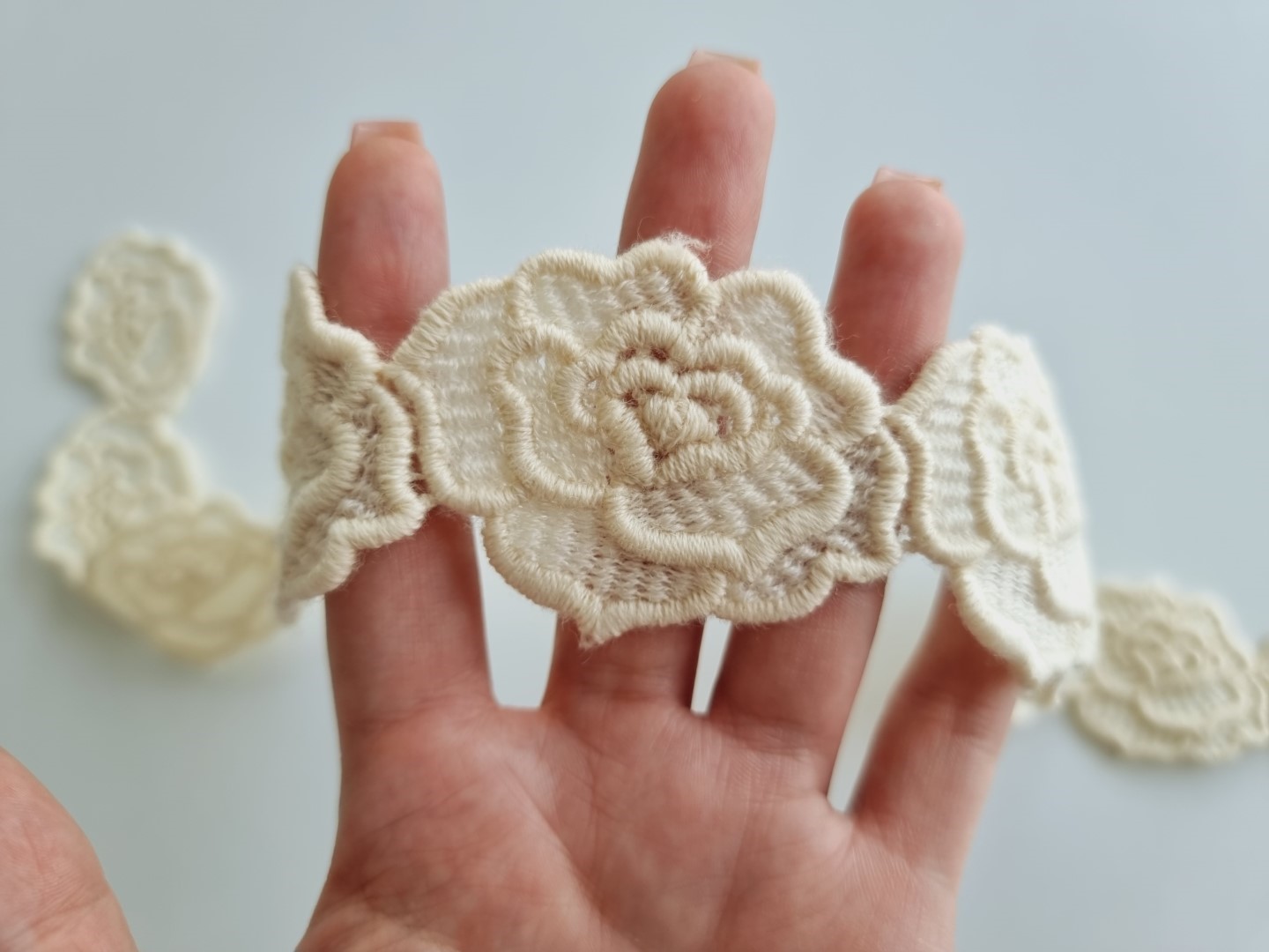 Aceasta aplicatie decorativa din lana poate fi folosita pentru accesorizarea tinutelor din stofa , elegante de zi sau de seara.