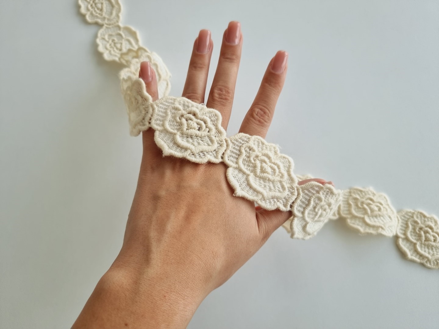 Banda decorativa subtire nature din lana, fabricata in Italia.