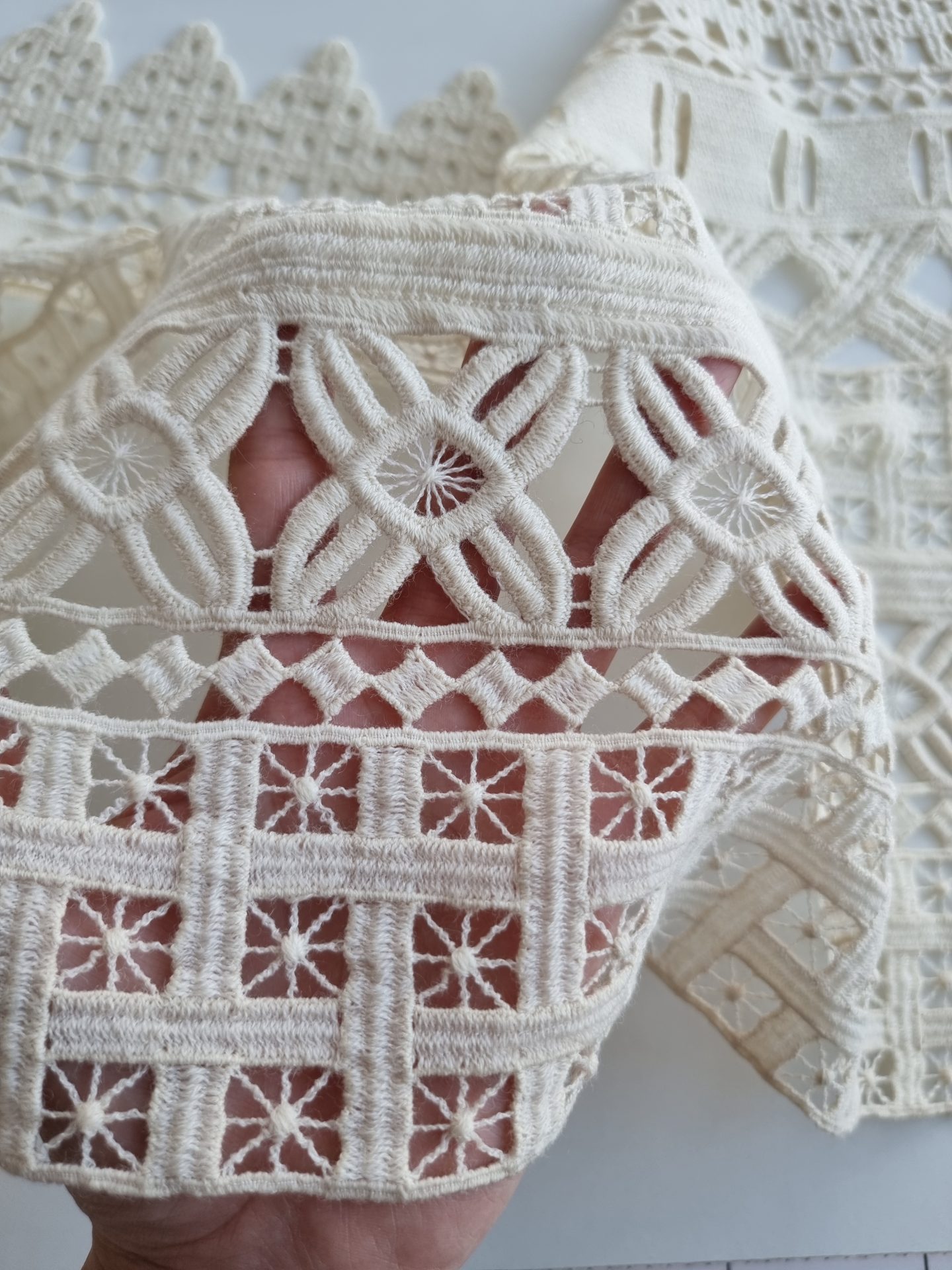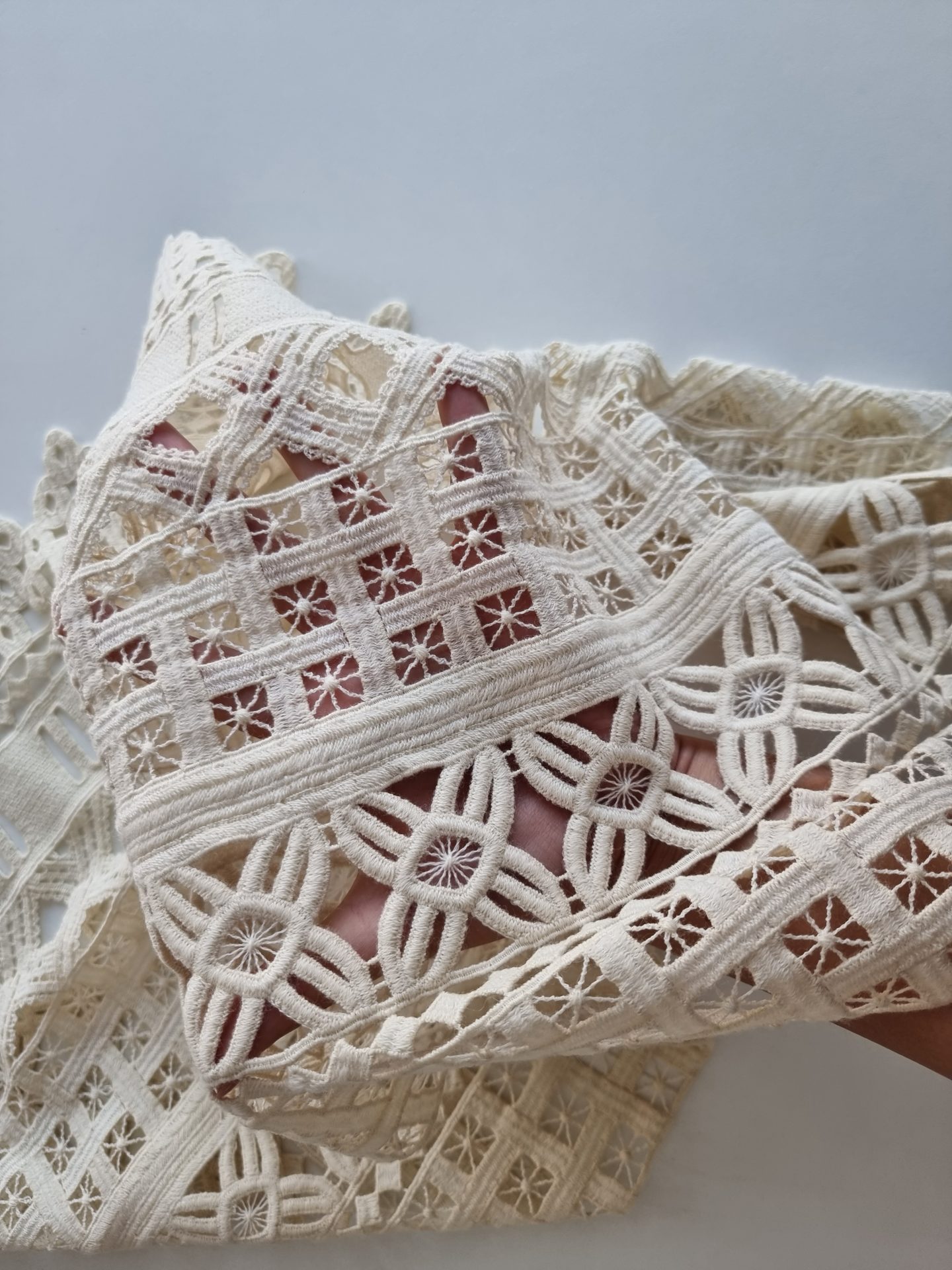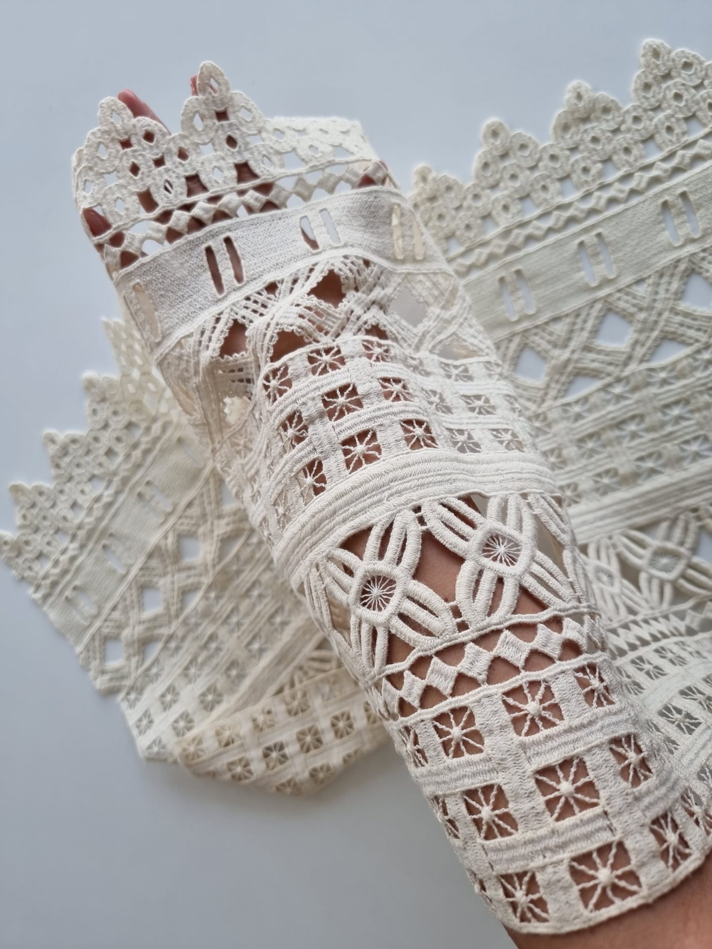 Caracteristici Banda lata de 40 cm din lana brodata ivoire: