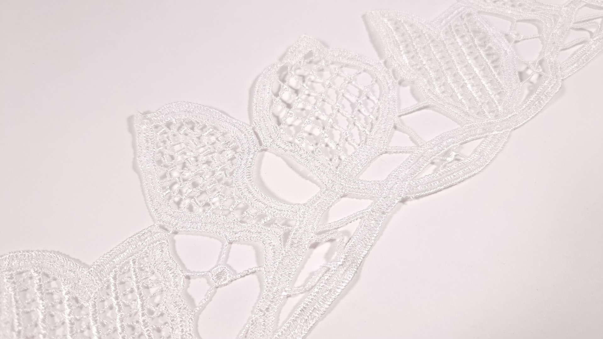 Aplicatie decorativa brodata alba – latime 9 cm, model deosebit si calitate inalta, fabricata in Italia.