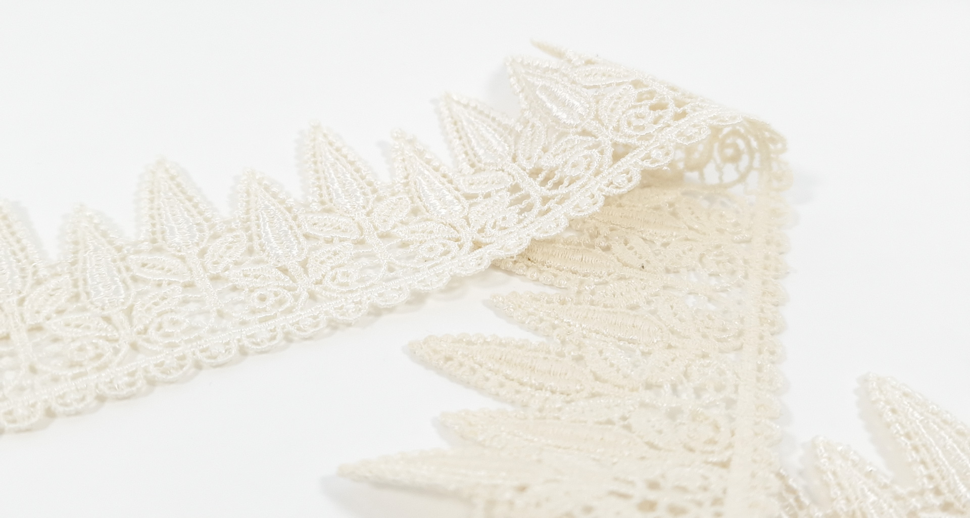 Aplicatie decorativa nature din vascoza si bumbac R87, latime 5 cm, calitate inalta, fabricata in Italia.