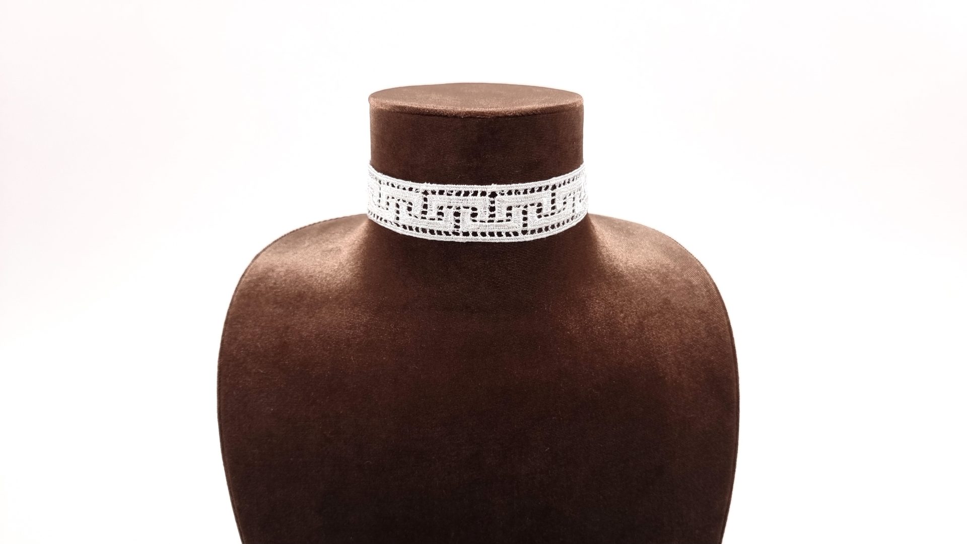 Banda decorativa ingusta din vascoza si bumbac ivory, model deosebit, calitate inalta, fabricata in Italia, latime de 2,5 cm.