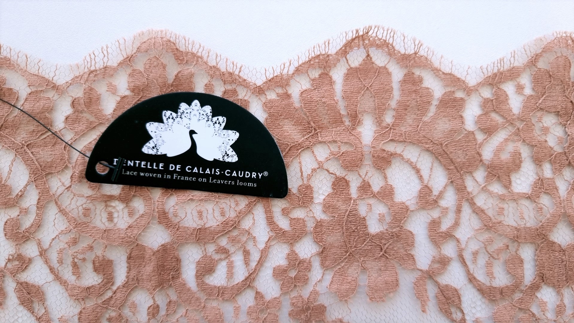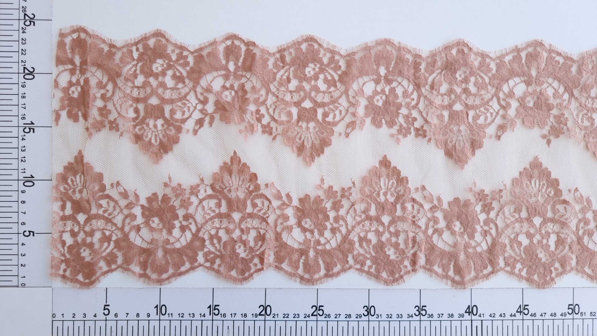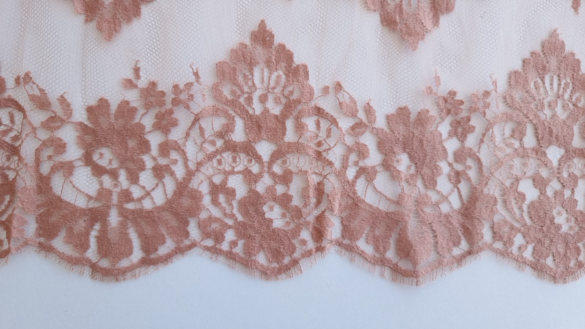 Bordura din dantela frantuzeasca caramizie , fina, delicata, de inalta calitate.