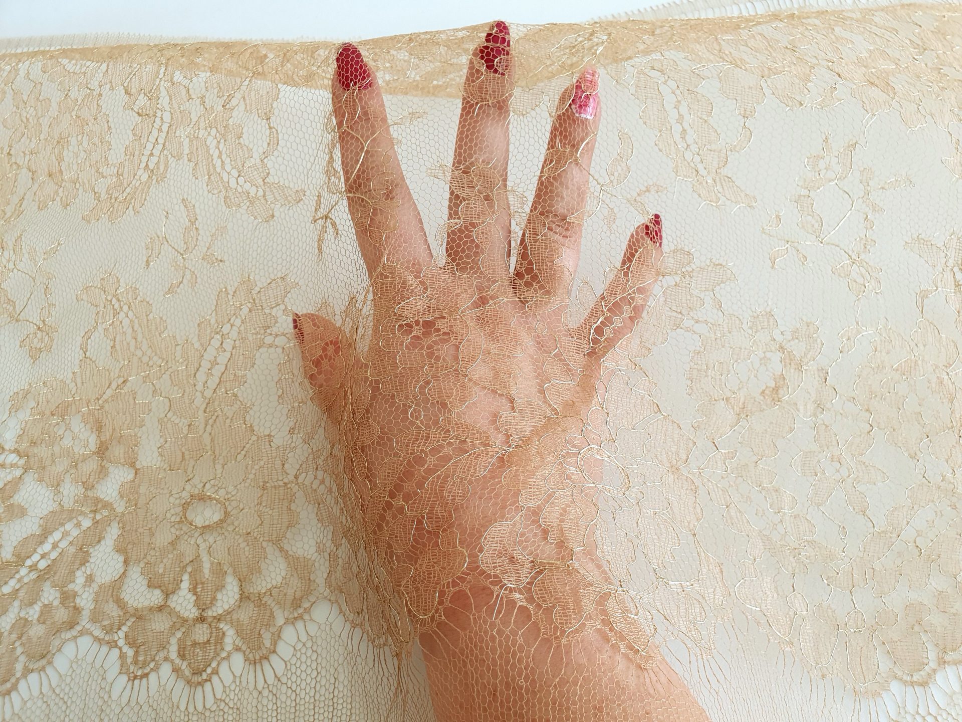 Caracteristici Bordura nude auriu Dantelle de Calais-Caudry