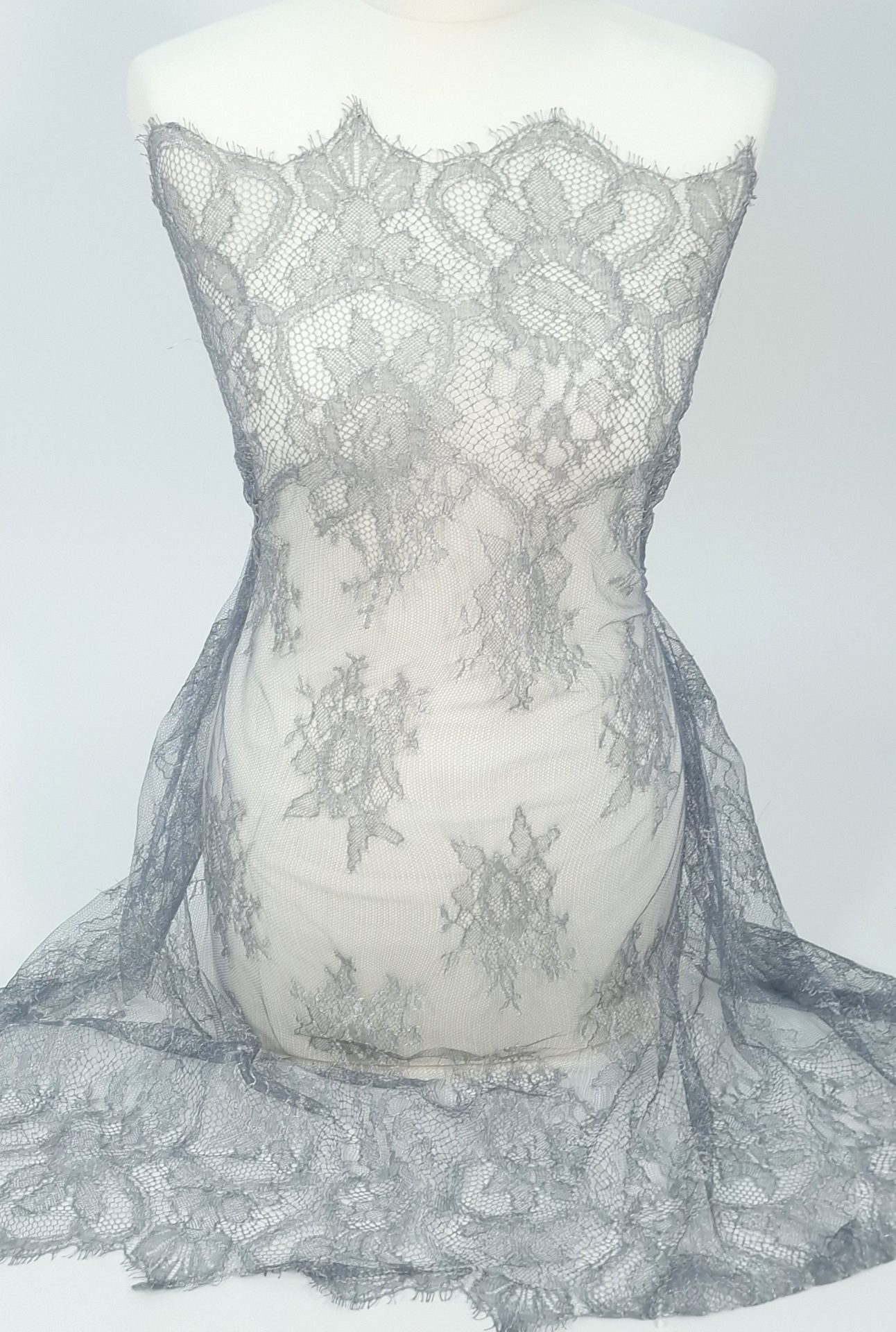 Caracteristici Dantela frantuzeasca metalizata Solstiss gri inchis: