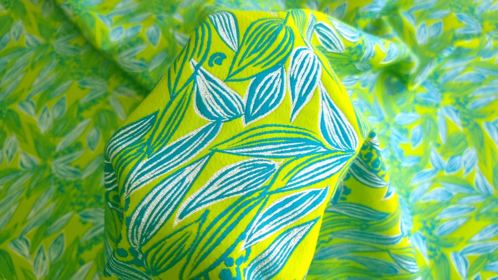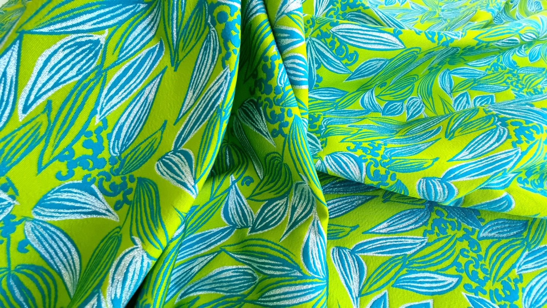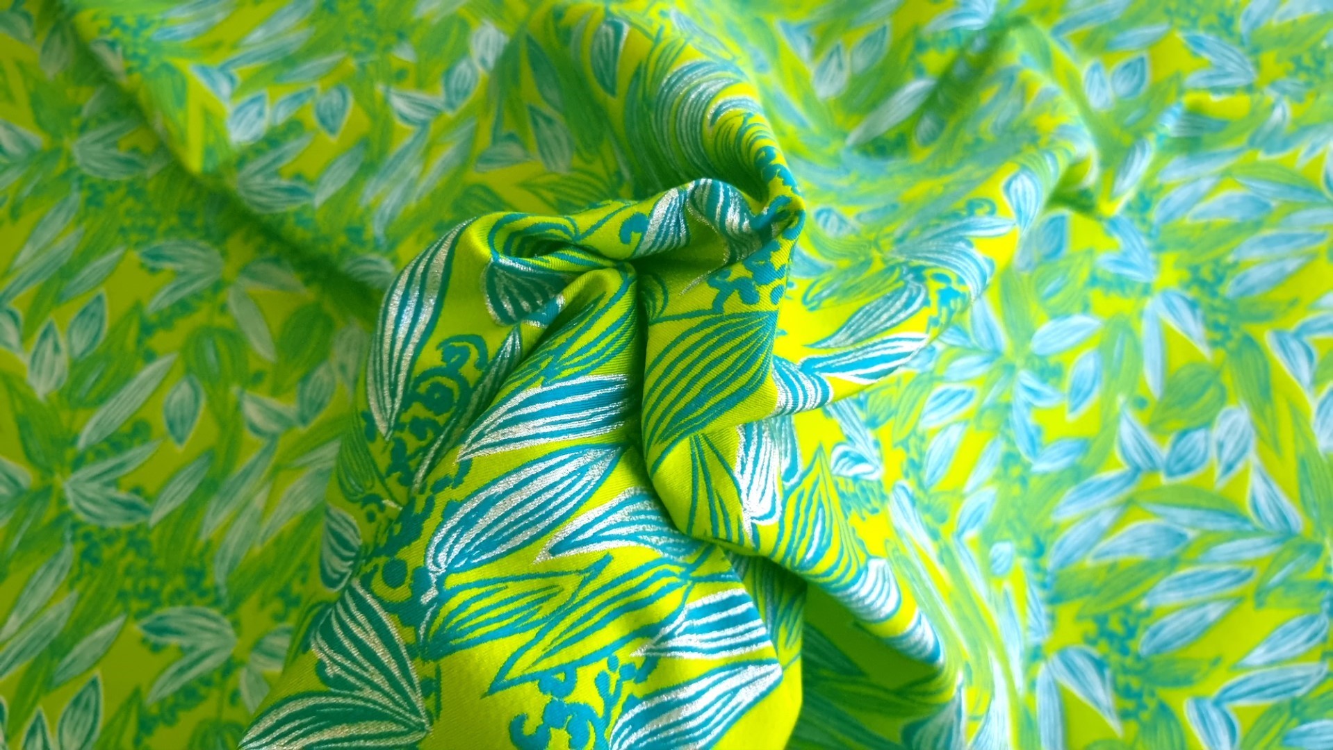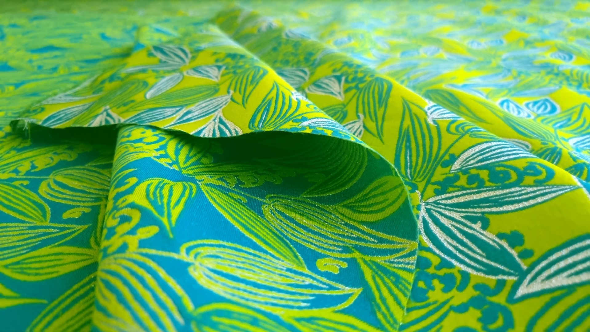Brocard cu bumbac Blue Leaf, model floral imprimat si insertie de fir metalizat, fara elastan, model in tendinte, foarte placut la atingere.