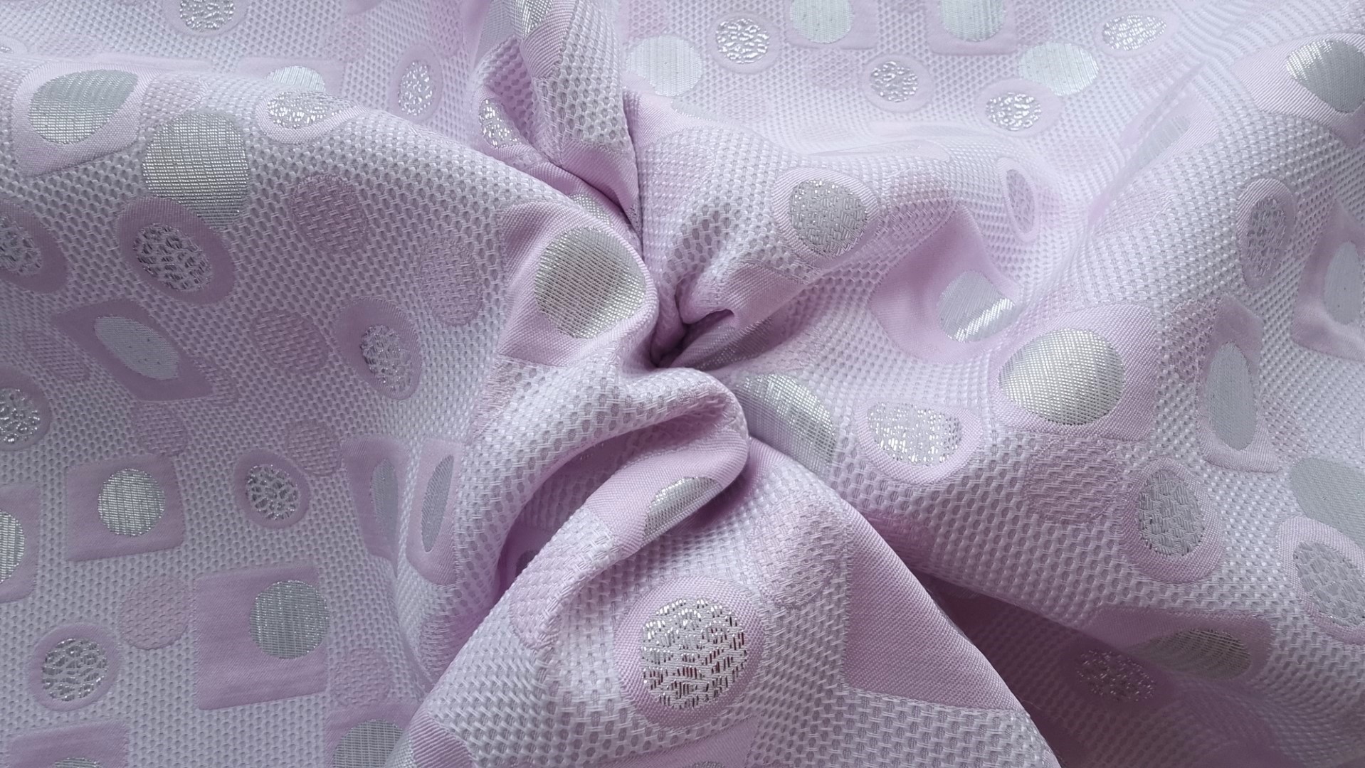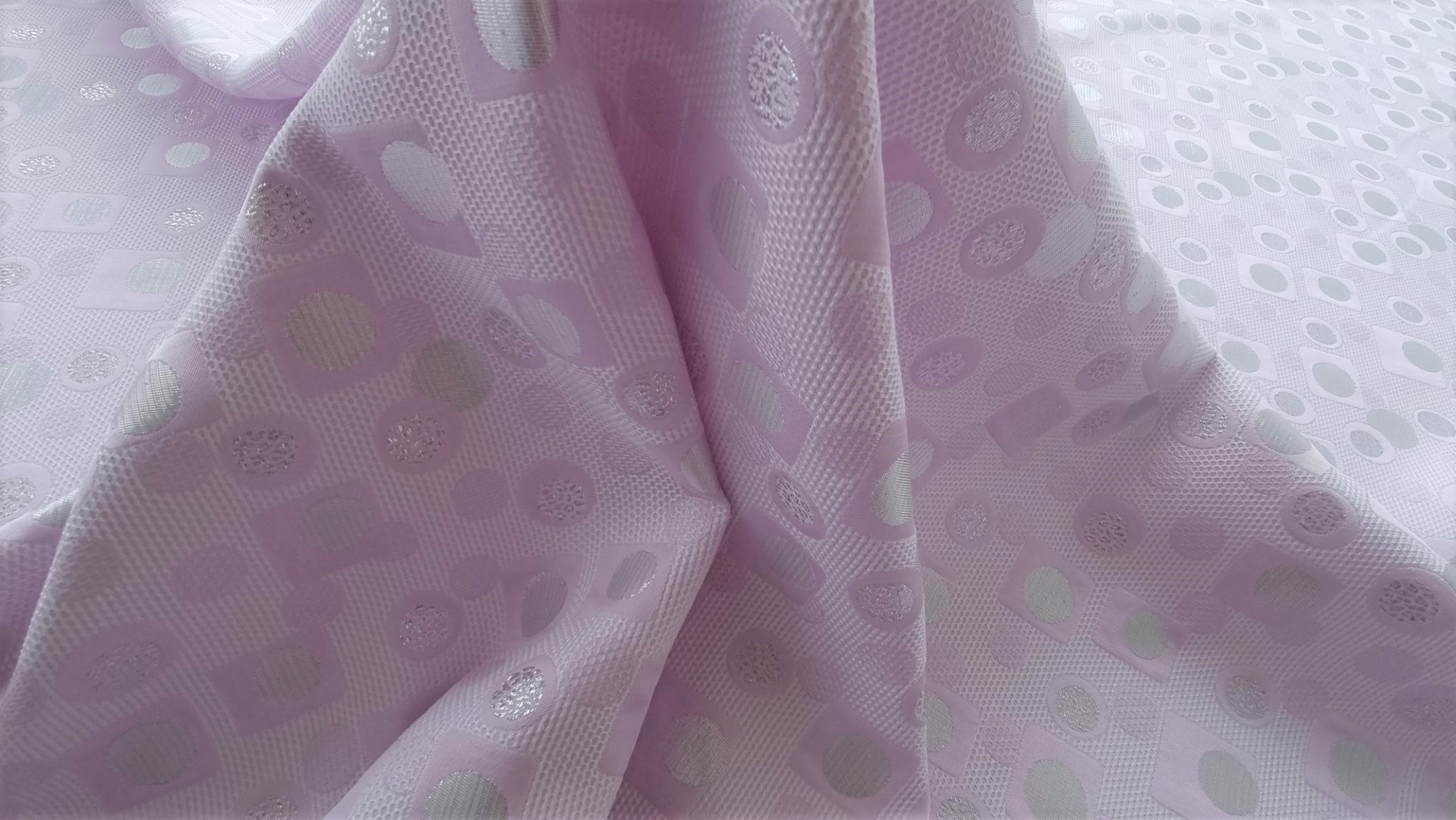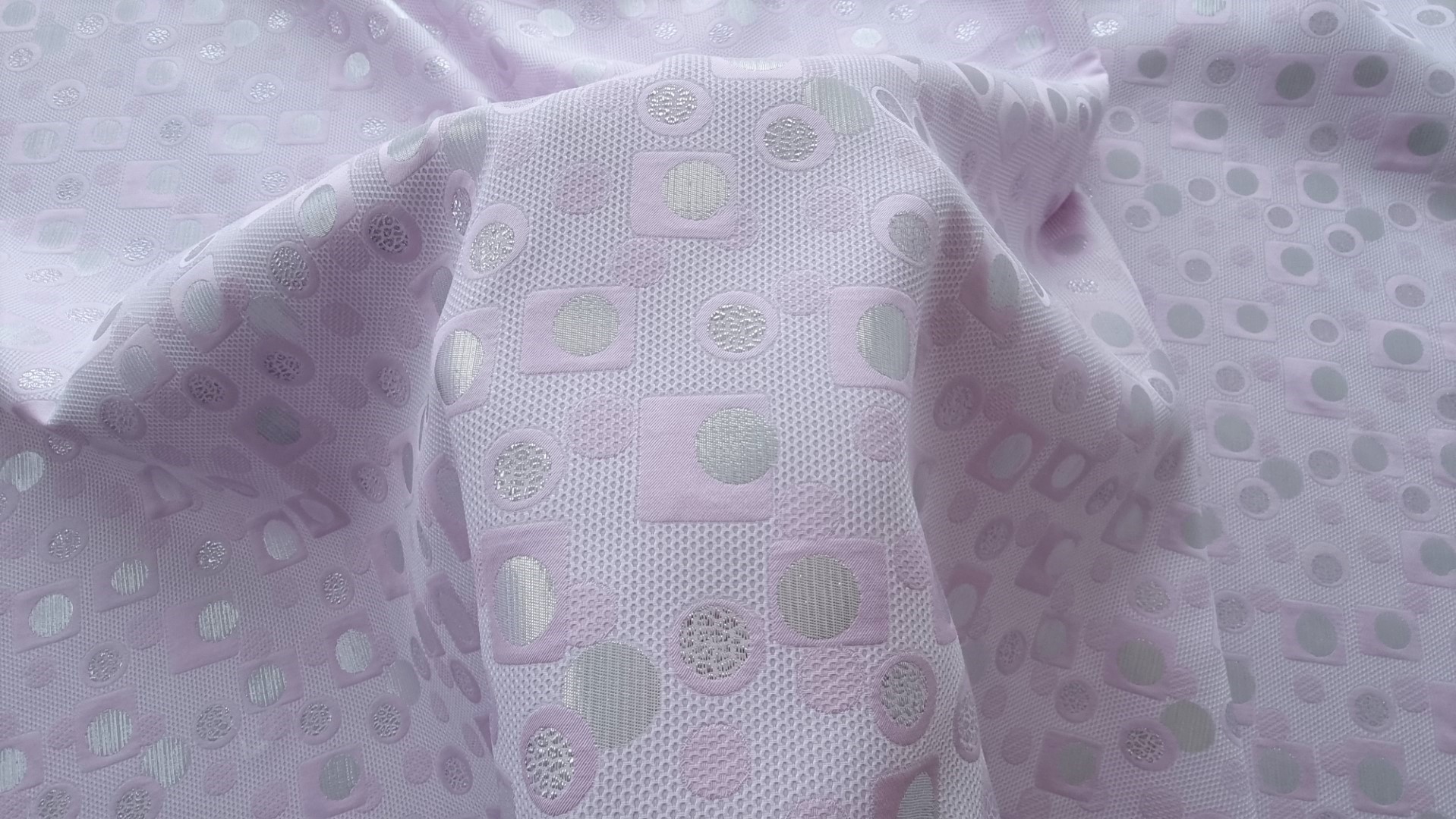 Brocard geometric cu fir metalizat lila, decorat cu forme geometrice în relief și accente de fir metalizat argintiu. Țesătura are o textură structurată și un aspect contemporan, cu jocuri de lumină ce pun în valoare designul inedit. Ușor elastic și versatil, acest material este potrivit pentru rochii elegante, fuste cu volum, sacouri fashion sau ținute de seară cu personalitate. Vă invităm să ne urmăriți și pe rețelele de socializare pentru a rămâne informați cu privire la ultimele noastre actualizări, oferte exclusive și surse de inspirație. Alăturați-vă comunității noastre online pe Facebook și Instagram. Vă așteptăm cu drag!