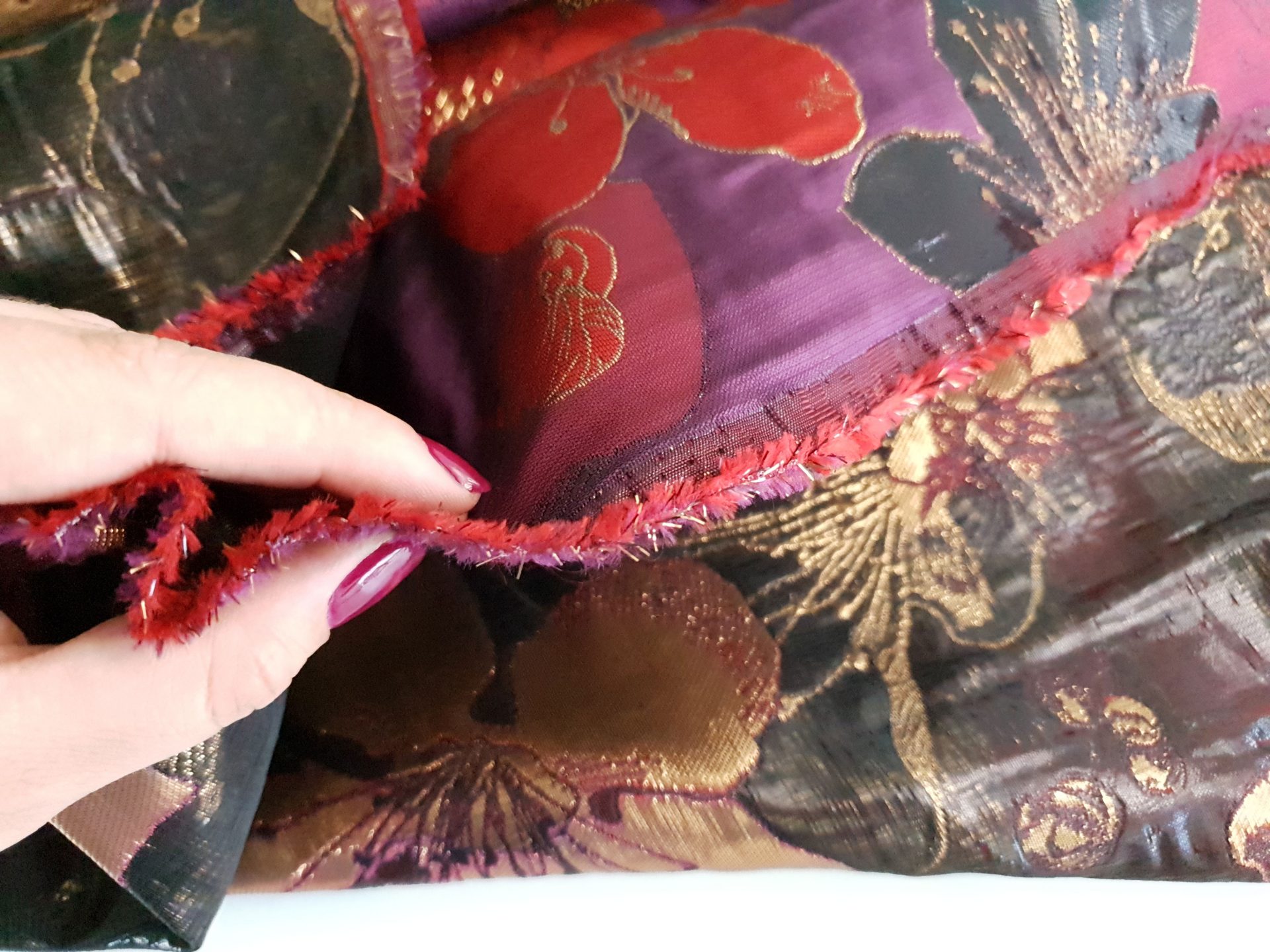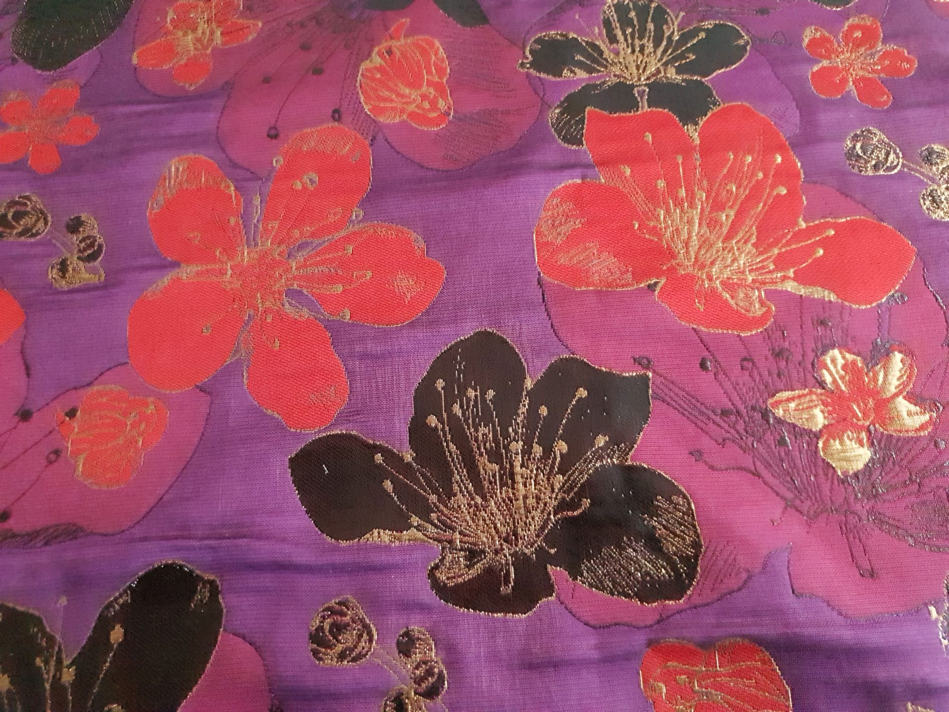 Culoare: Mov imperial, rosu, negru si fir gold-aramiu