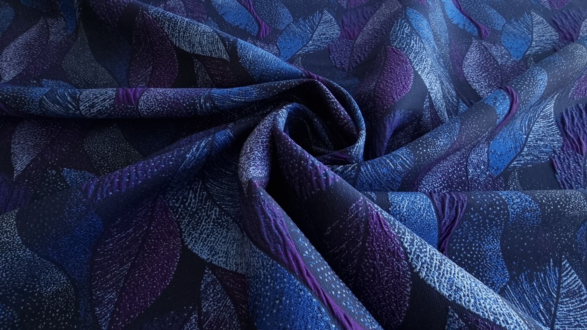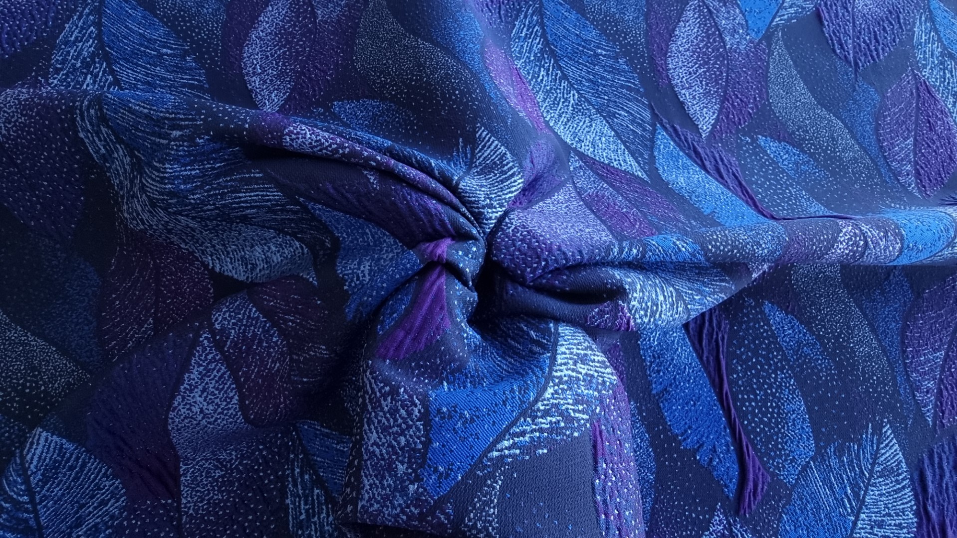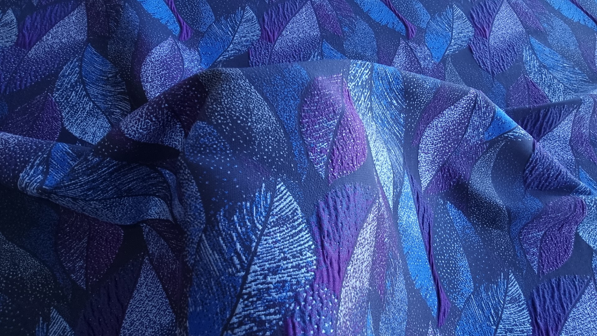 Brocard multicolor Royal Purple Leaves, model frunze in diferite nuante de albastru si mov, distribuit pe intreaga suprafata, cu insertii de fir metalizat.