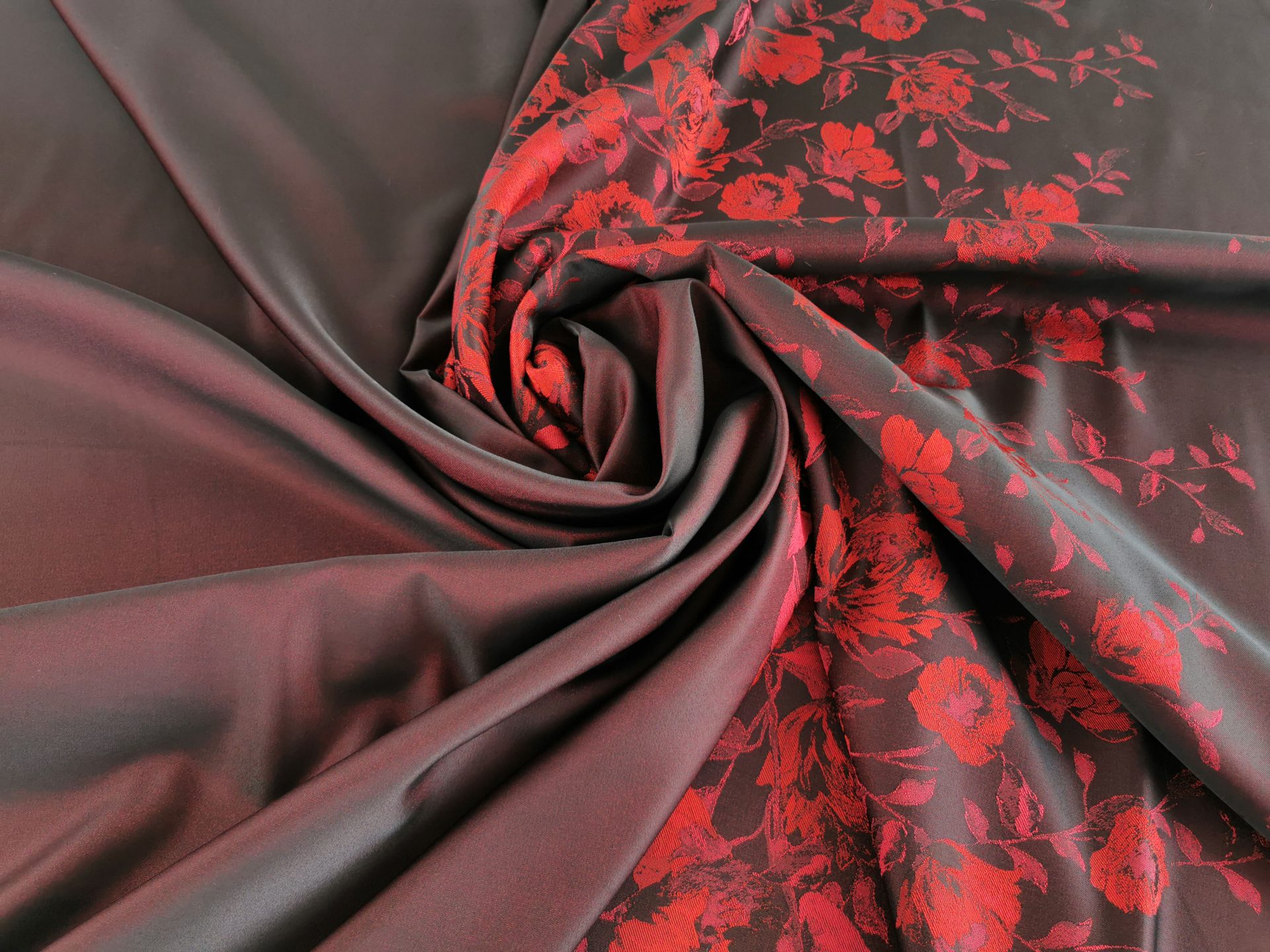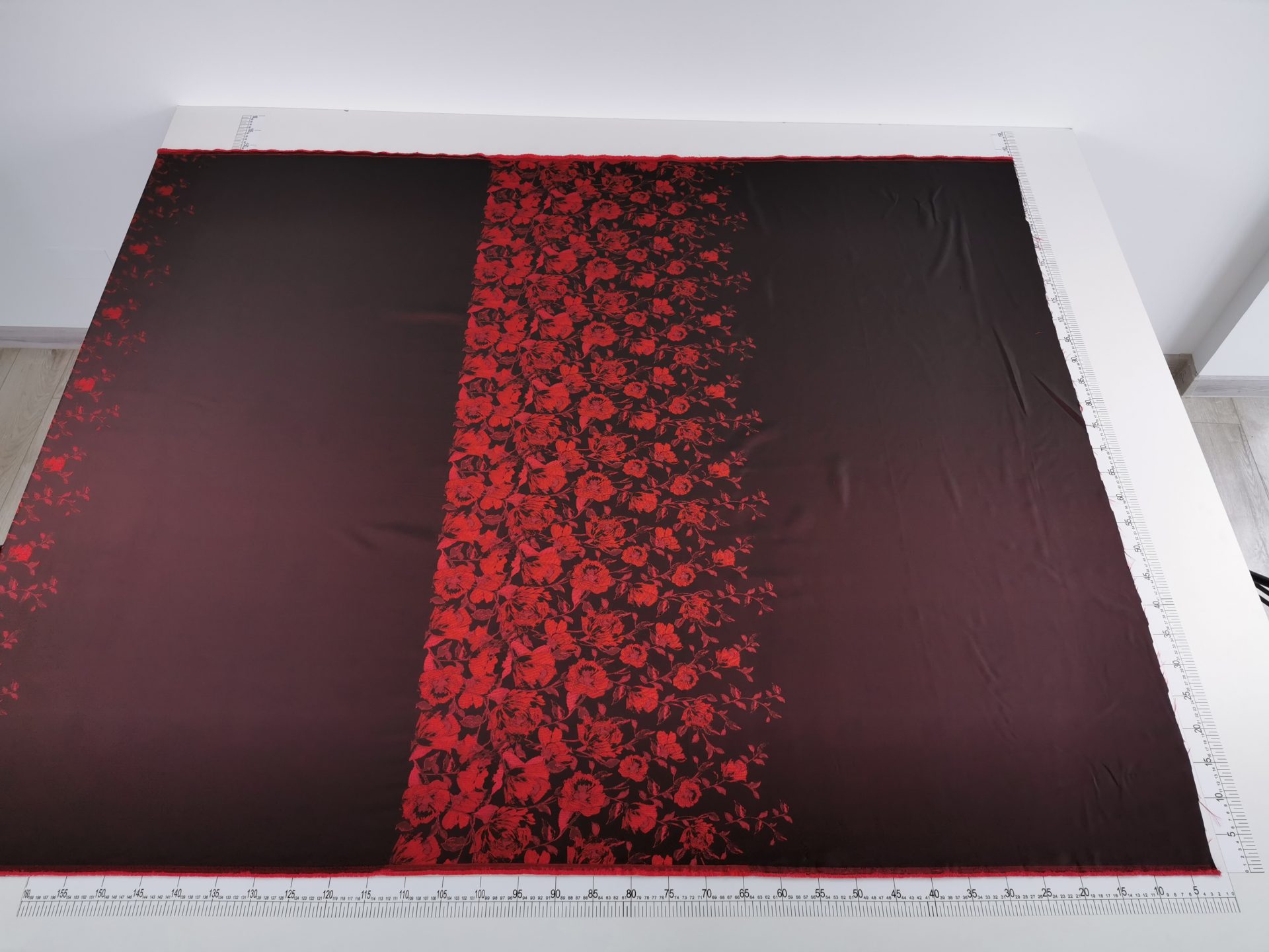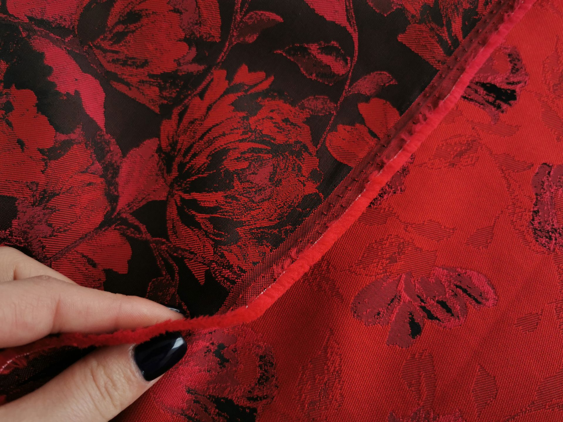 Brocard rosu & burgundy cu flori si model ce se repeta la un interval de aproximativ 110 cm.