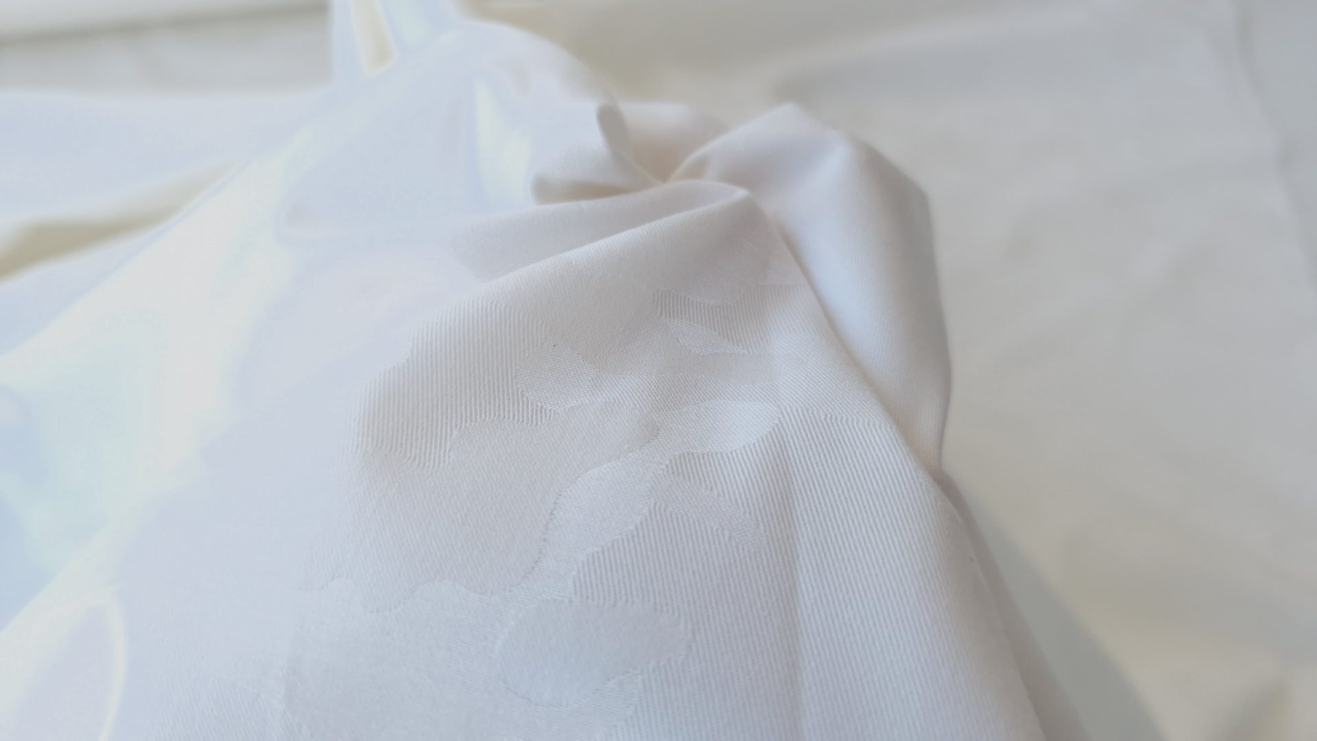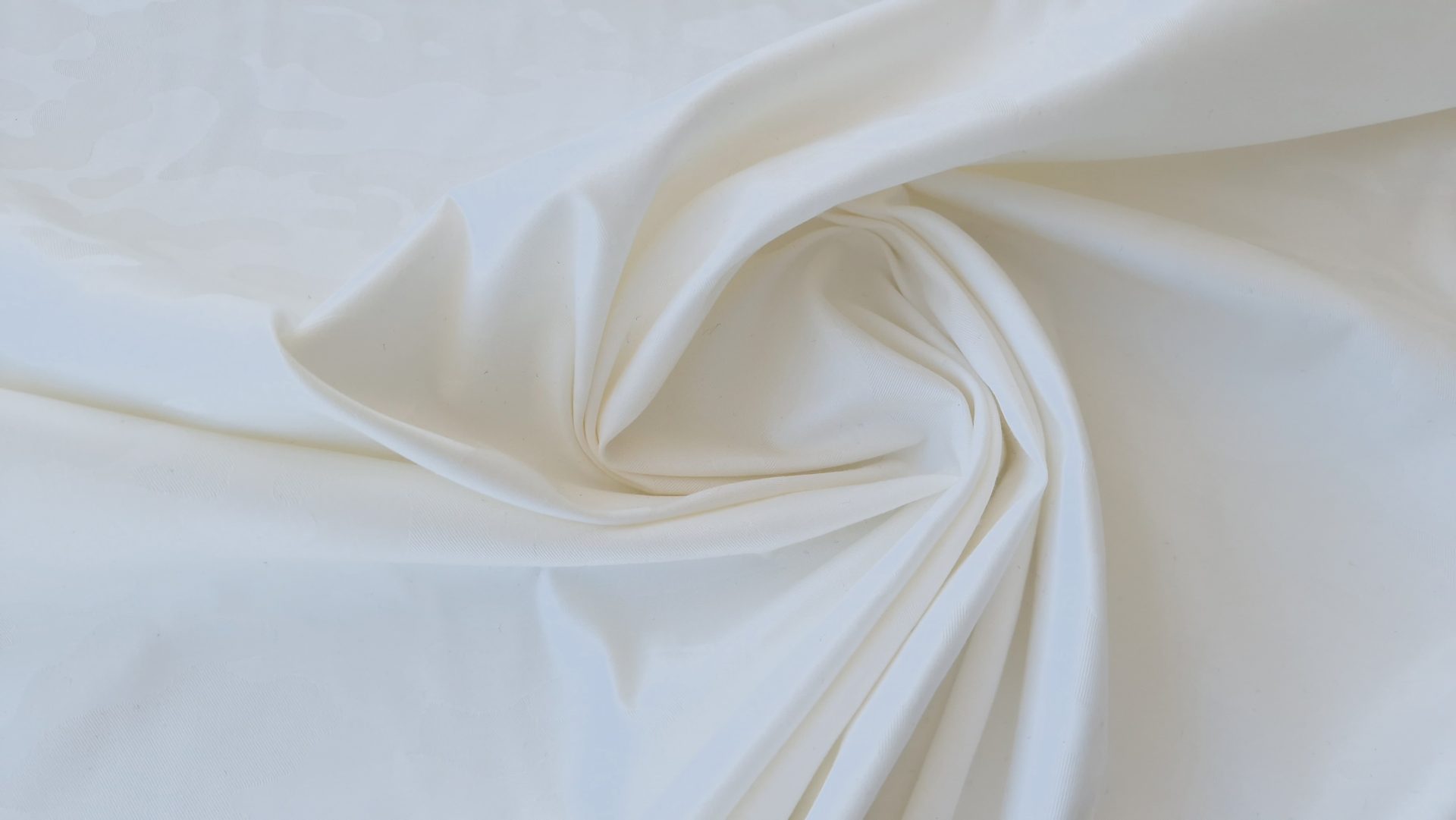 Jacquard gros ivory din bumbac, foarte placut la atingere, fara elastan, model distribuit pe intreaga suprafata.Cu o textura opaca si lejera, materialul poate fi utilizat cu succes pentru confectionarea unor piese vestimentare precum rochii, fuste potrivite sezonului cald.