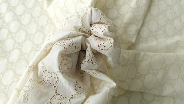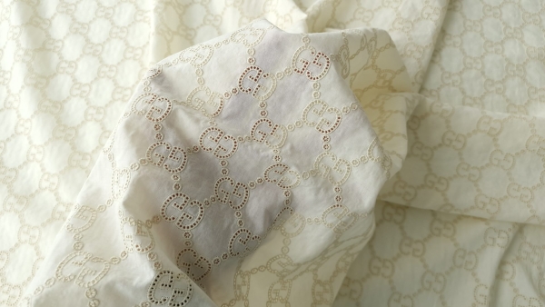 Tesatura fina din bumbac brodat GC1265, cu o textura placuta la atingere, calitate superioara, cu model distribuit pe intreaga suprafata, de inspiratie Gucci.