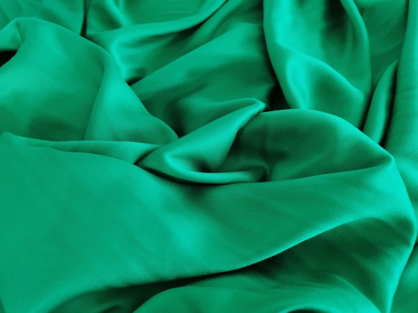 Tesatura verde iarba din matase naturala si bumbac opaca, subtire si placuta la atingere.
