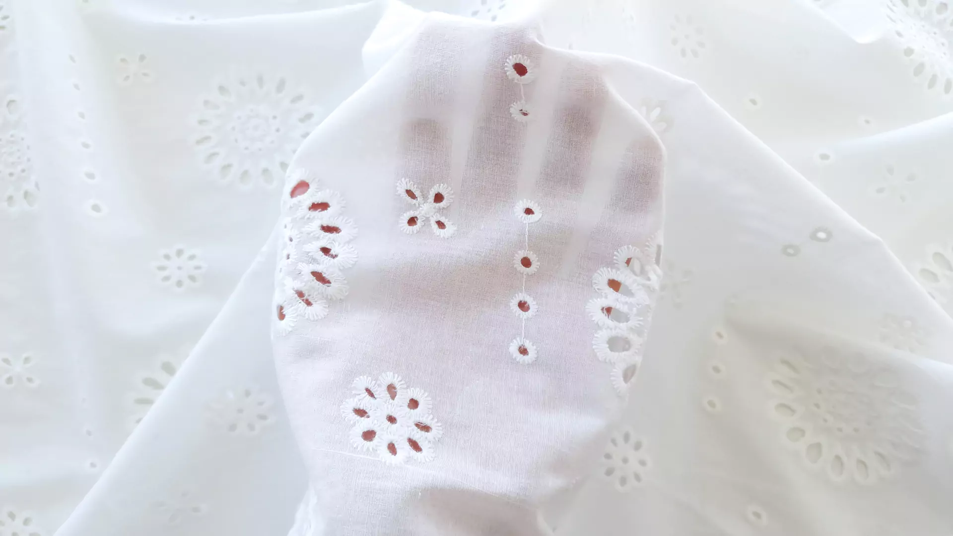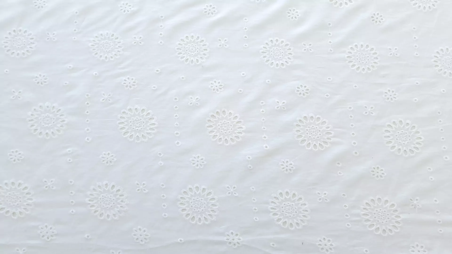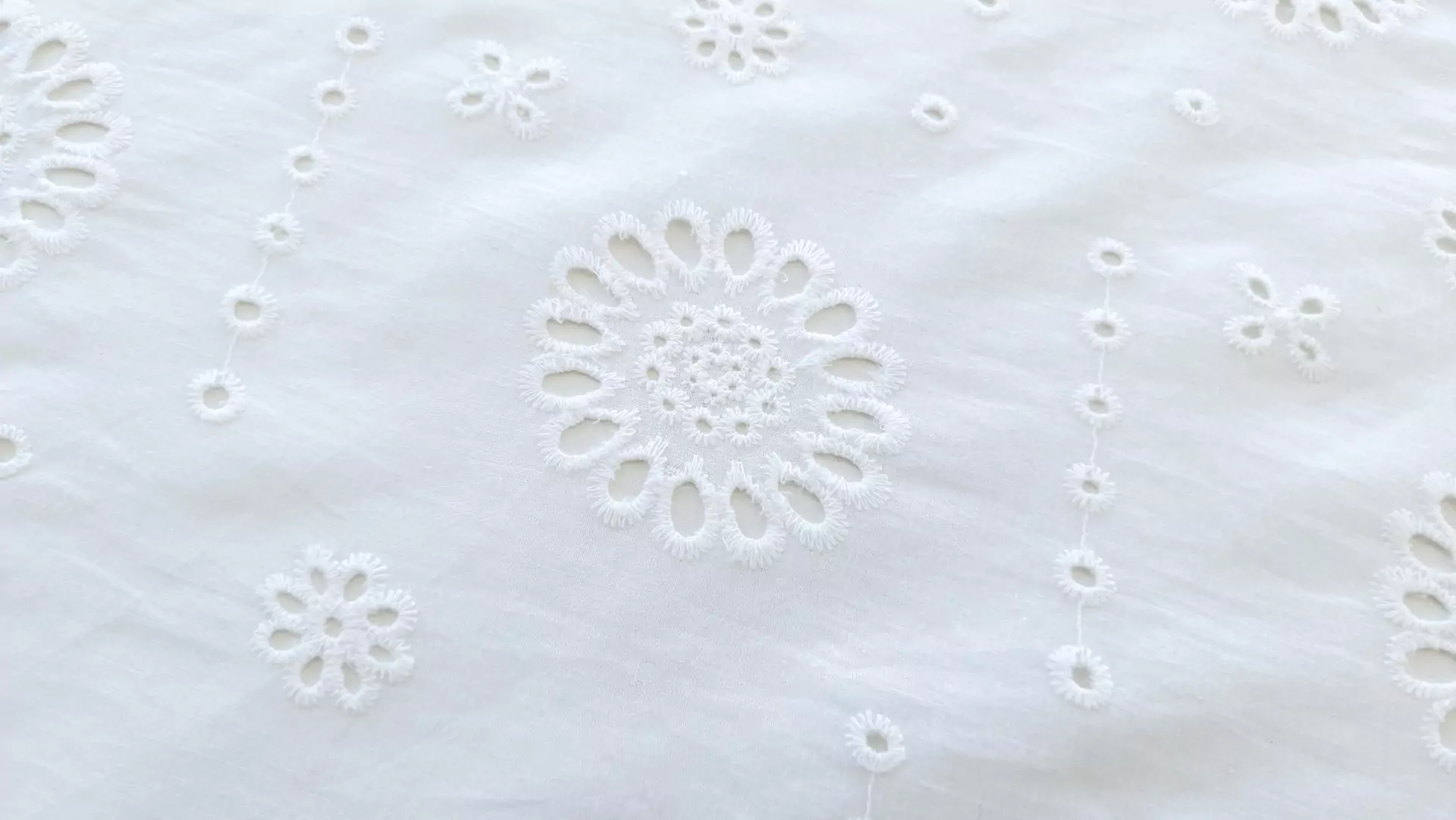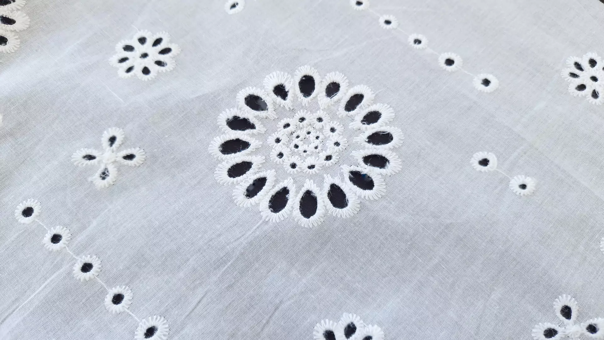 Batist brodat din bumbac ivory, țesătură moale și delicată, ideală pentru zilele călduroase de vară. Acest material natural, fin și respirabil, este perfect pentru a crea piese vestimentare ușoare și confortabile, oferind un aspect elegant și rafinat. Perfect pentru rochii vaporoase, bluze casual și alte creații vestimentare, batistul brodat aduce un plus de rafinament și eleganță oricărei garderobe.