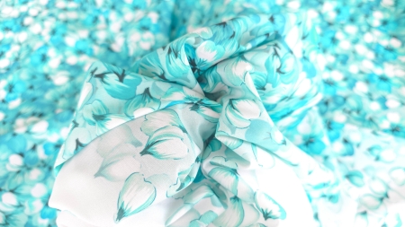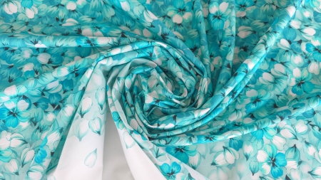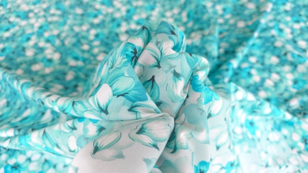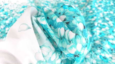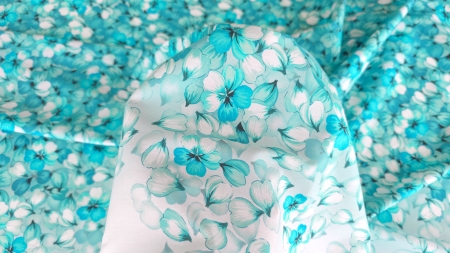 Caracteristici Poplin imprimat din bumbac Aqua Petals Rain :