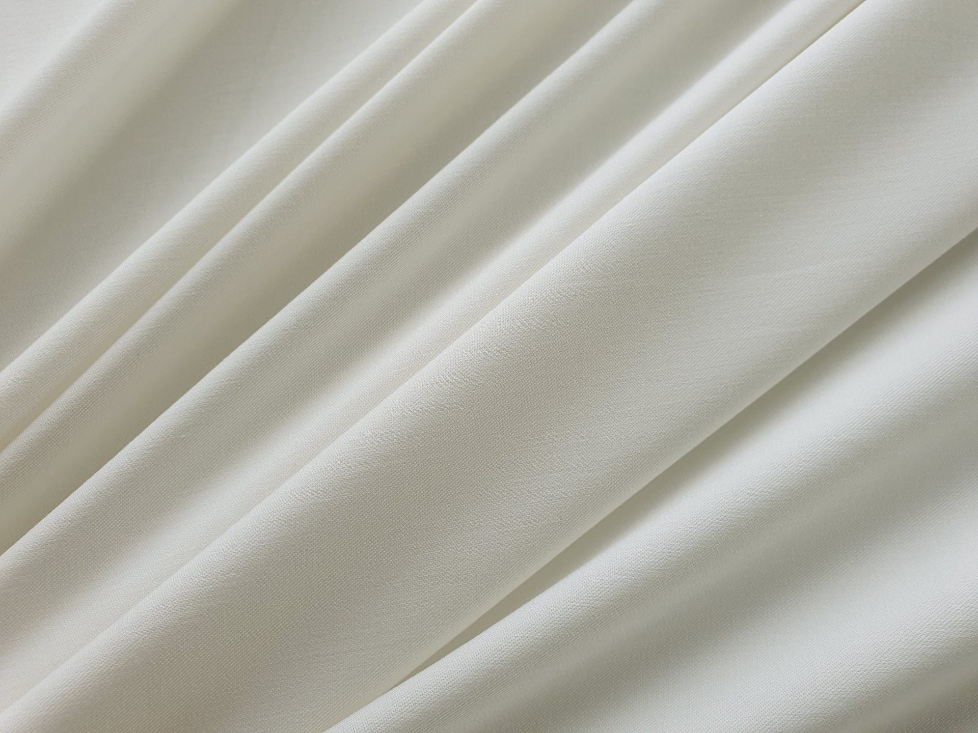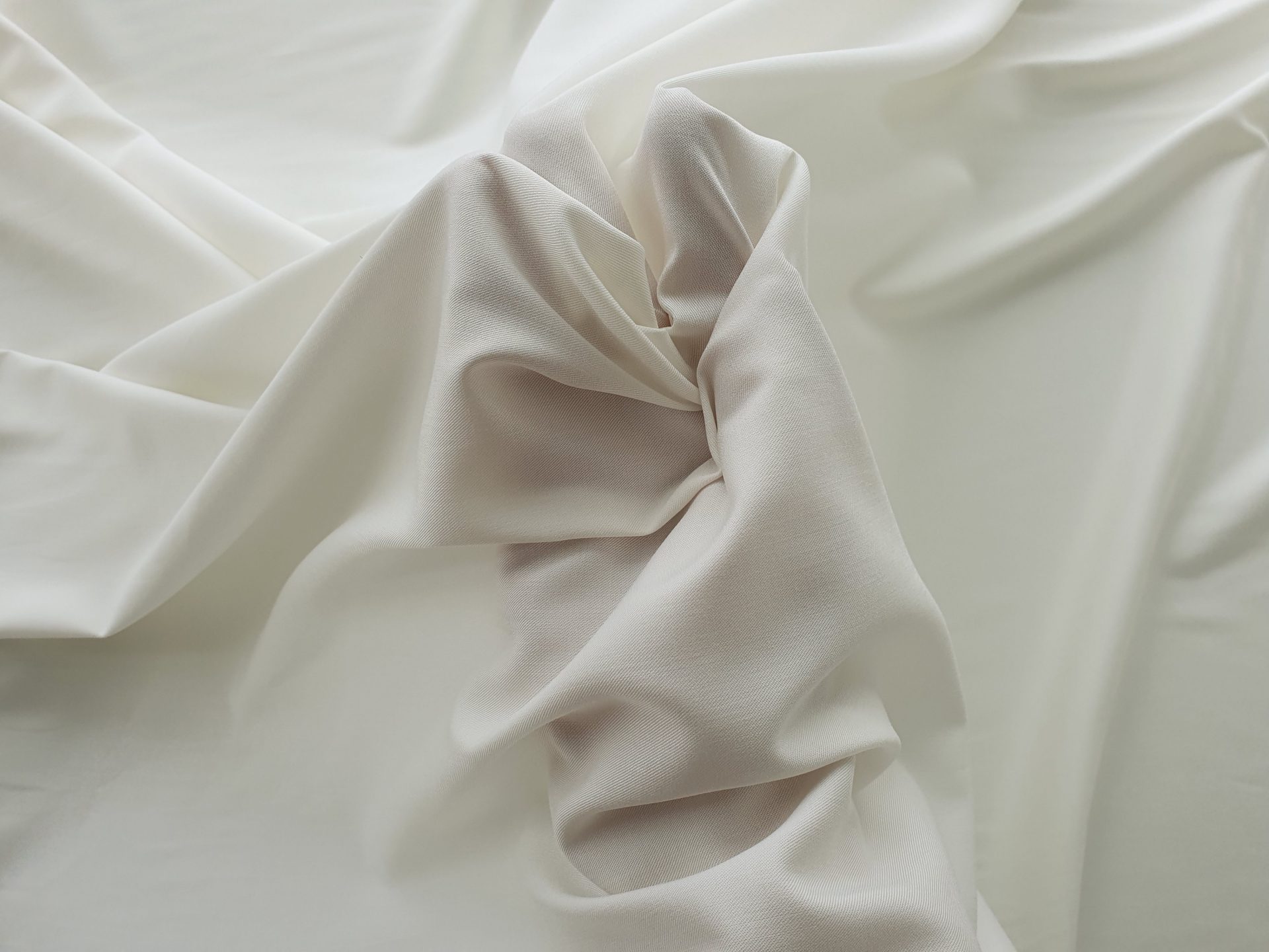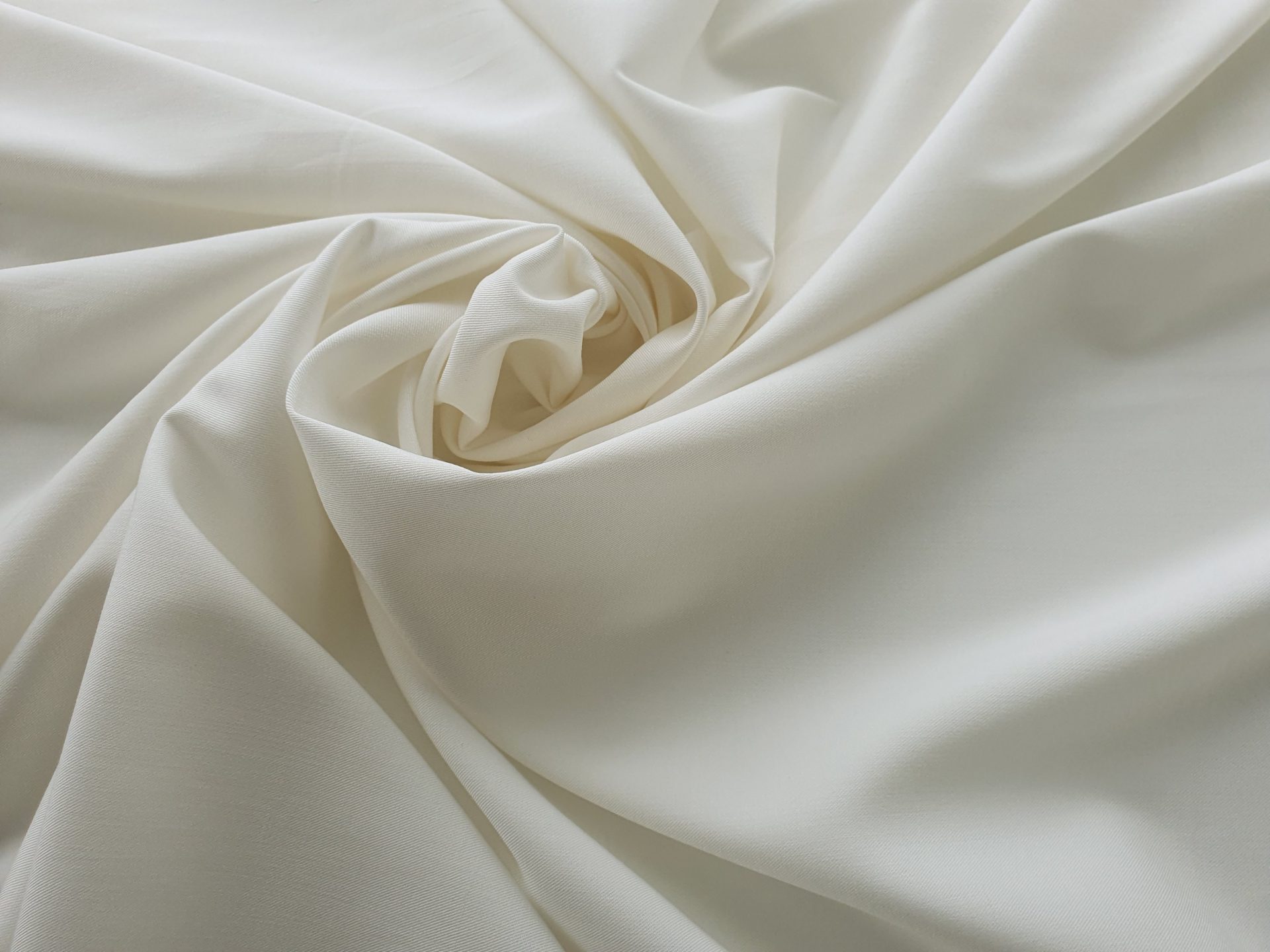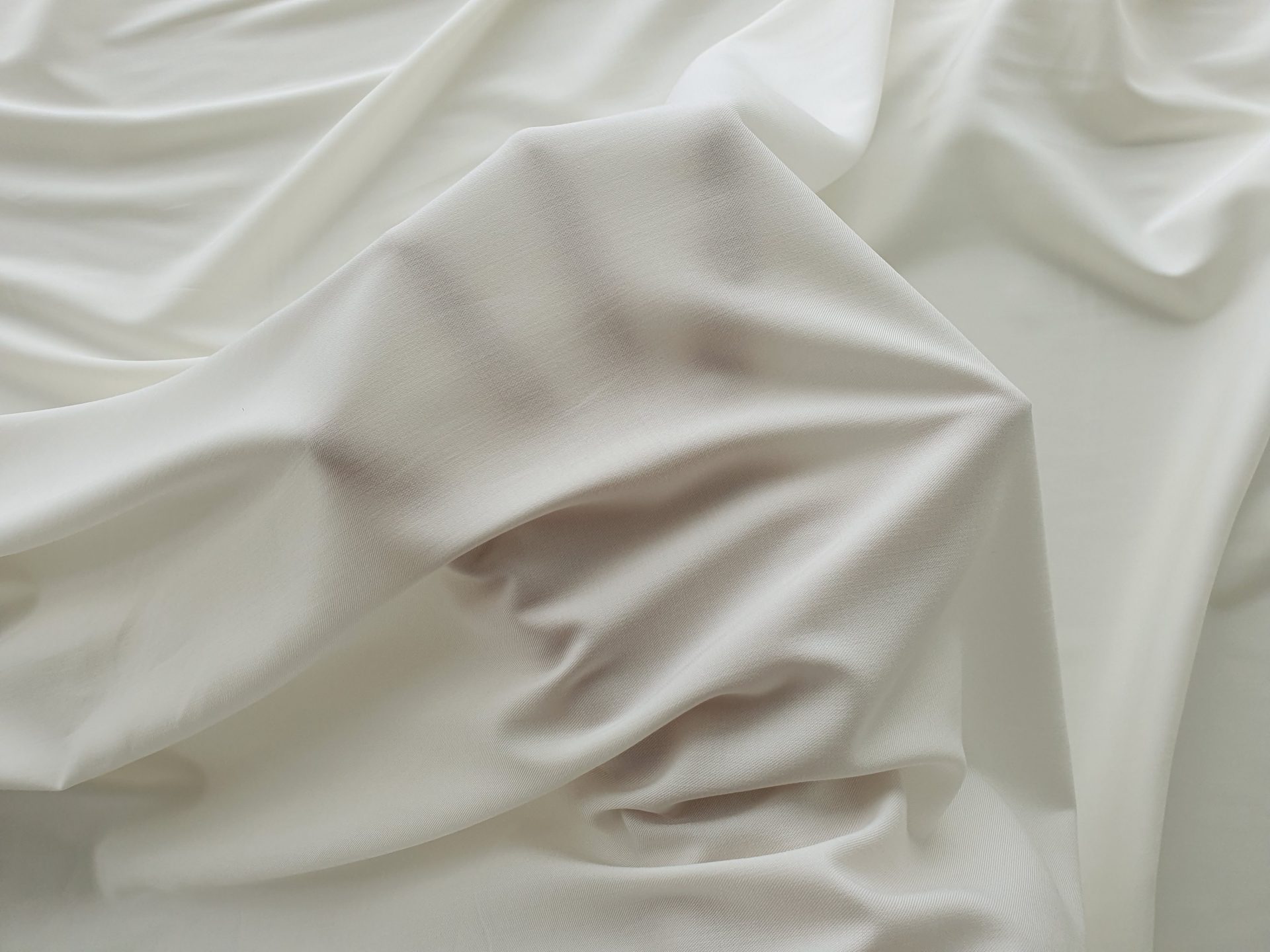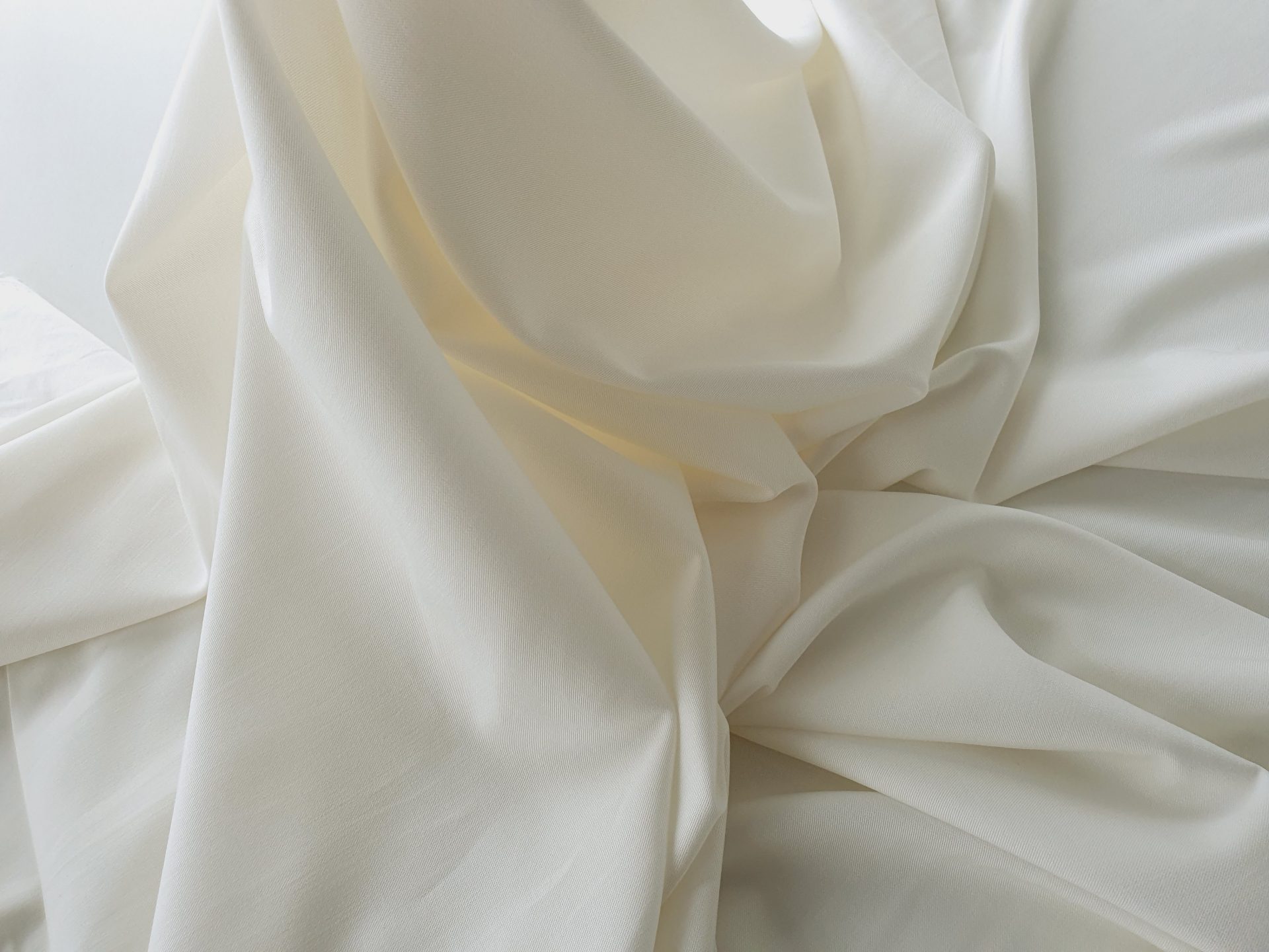 Tesatura moale din bumbac cu elastan , ivory, subtire, cu textura fina.