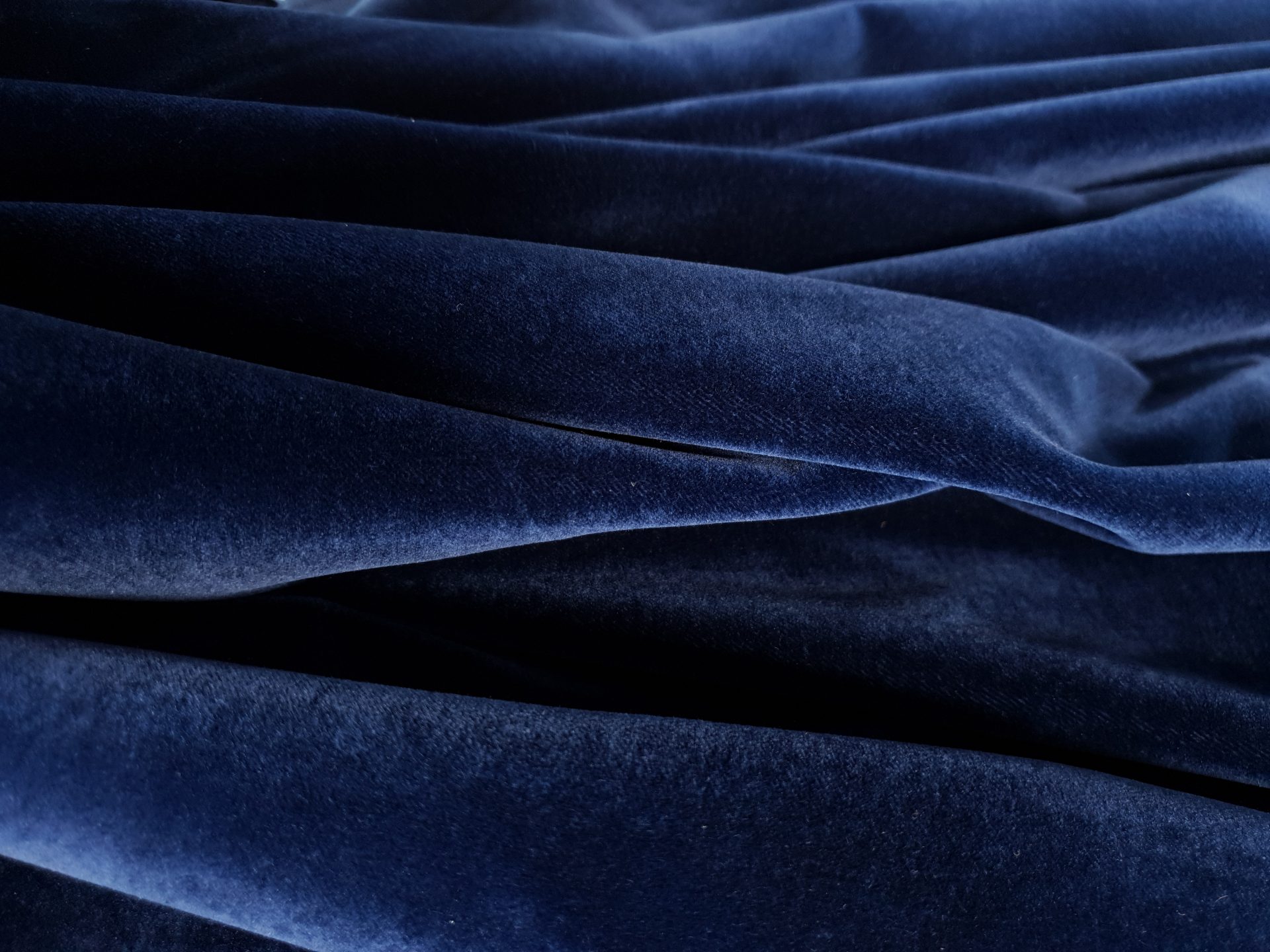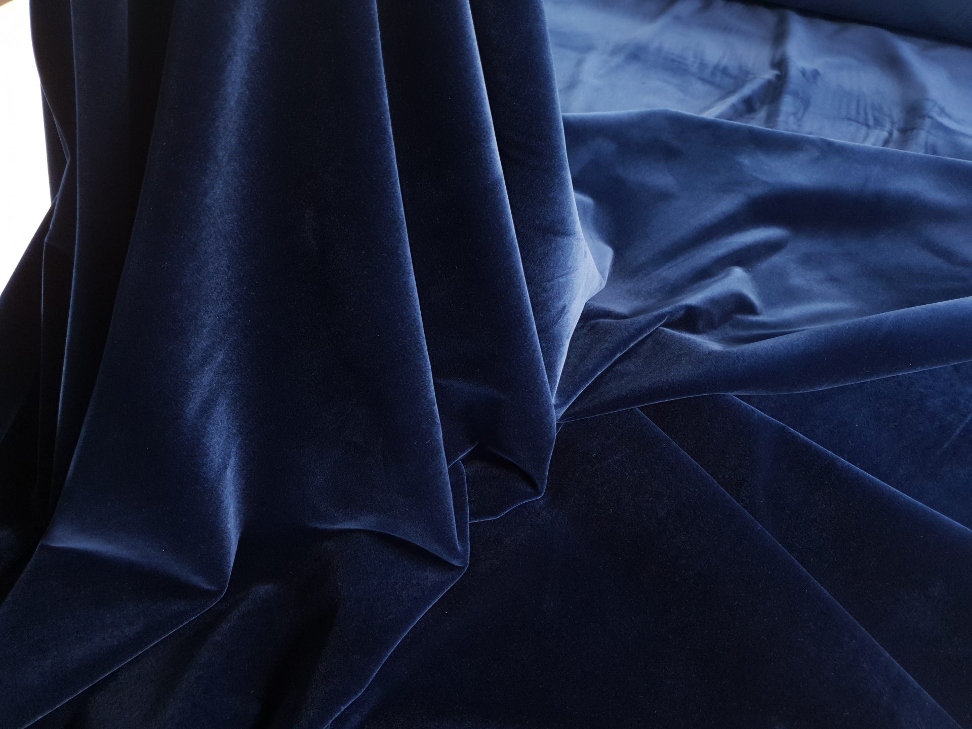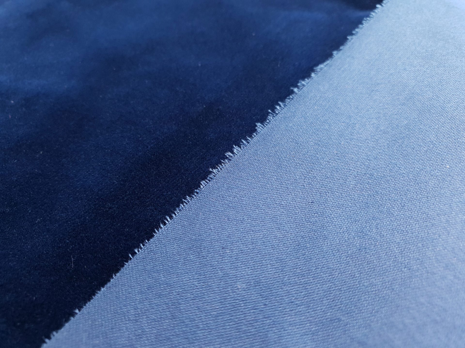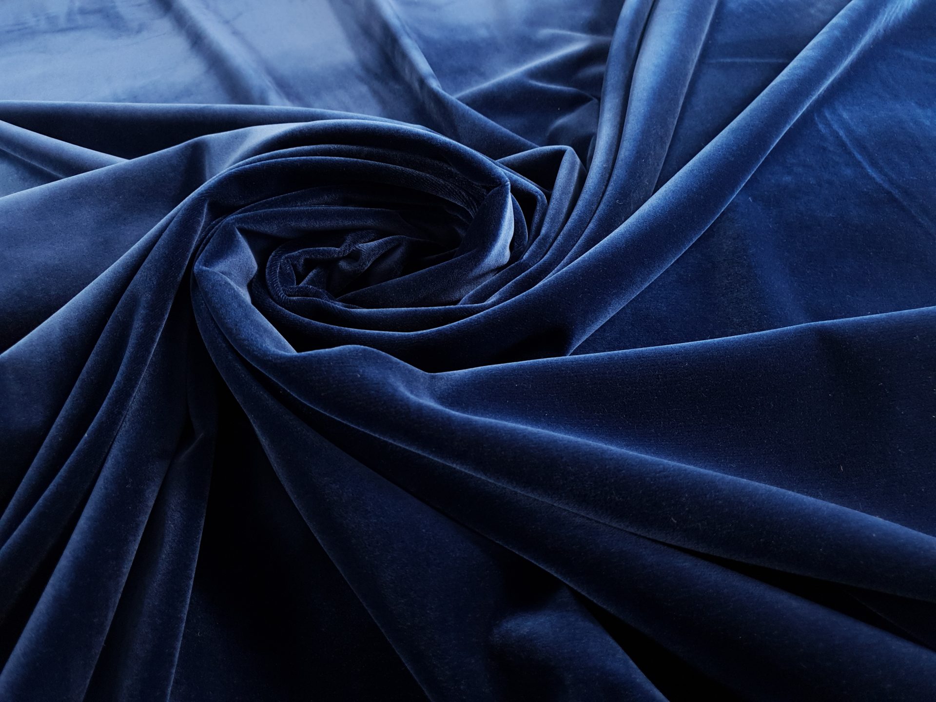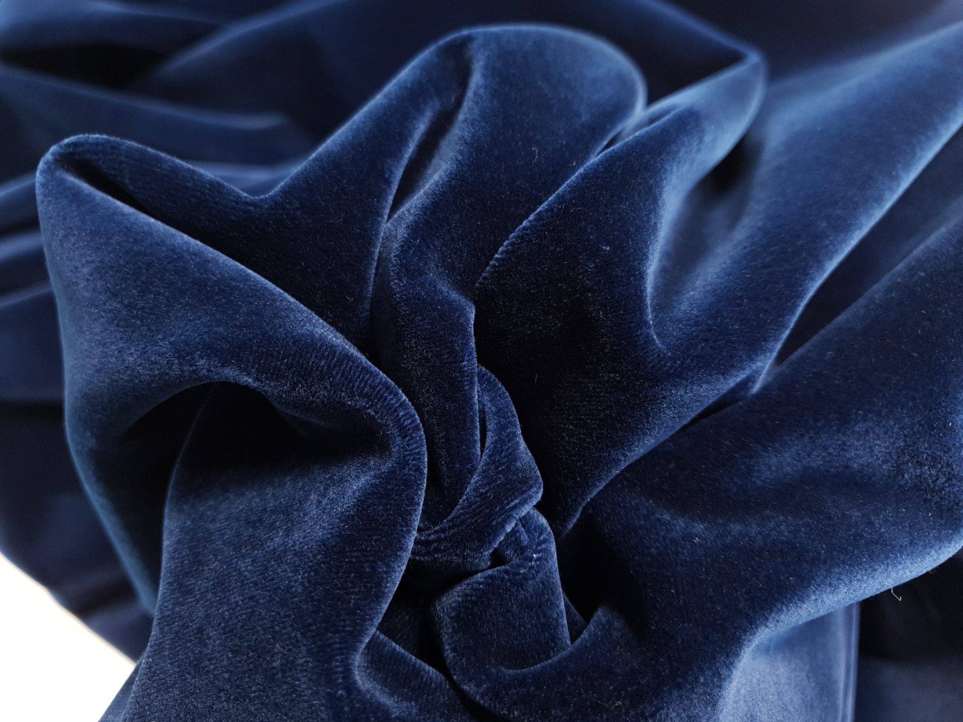 Catifea bleumarin din bumbac usor elastica VIW216, calitate inalta, foarte placuta la atingere, ușor elastică, o țesătură de calitate superioară, moale, densă și plăcută la atingere, cu un luciu discret specific catifelei naturale. Materialul are o textură compactă, care își păstrează forma și oferă o cădere elegantă, potrivită atât pentru ținute casual-elegante, cât și pentru creații vestimentare de seară.