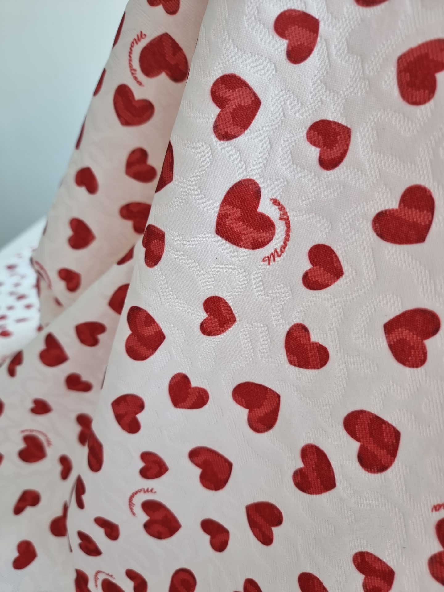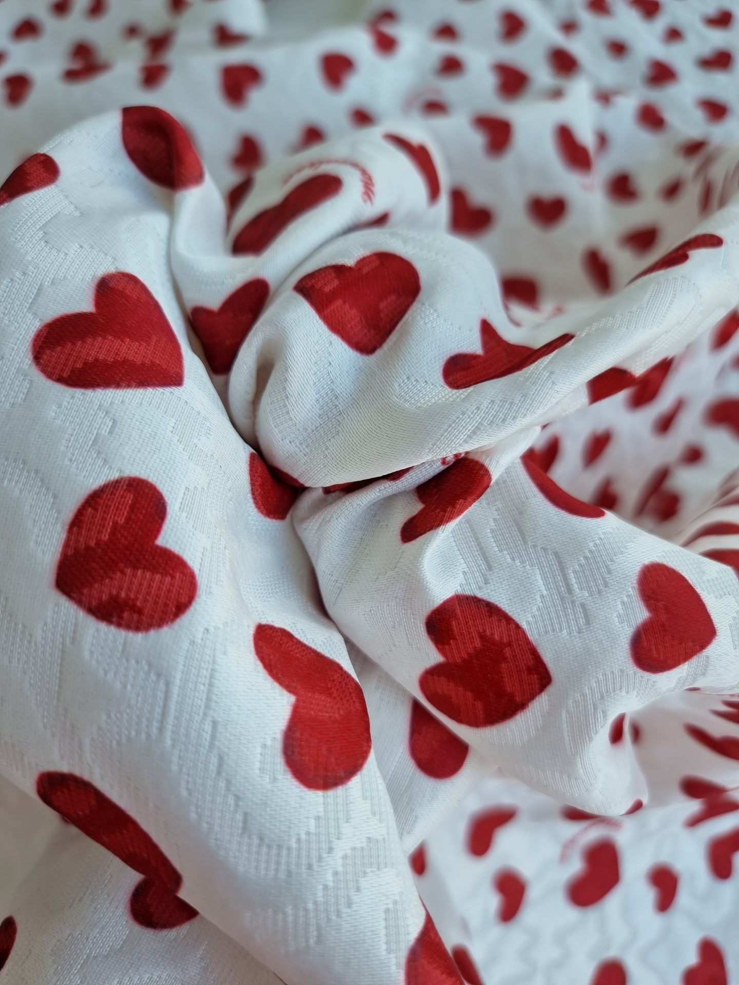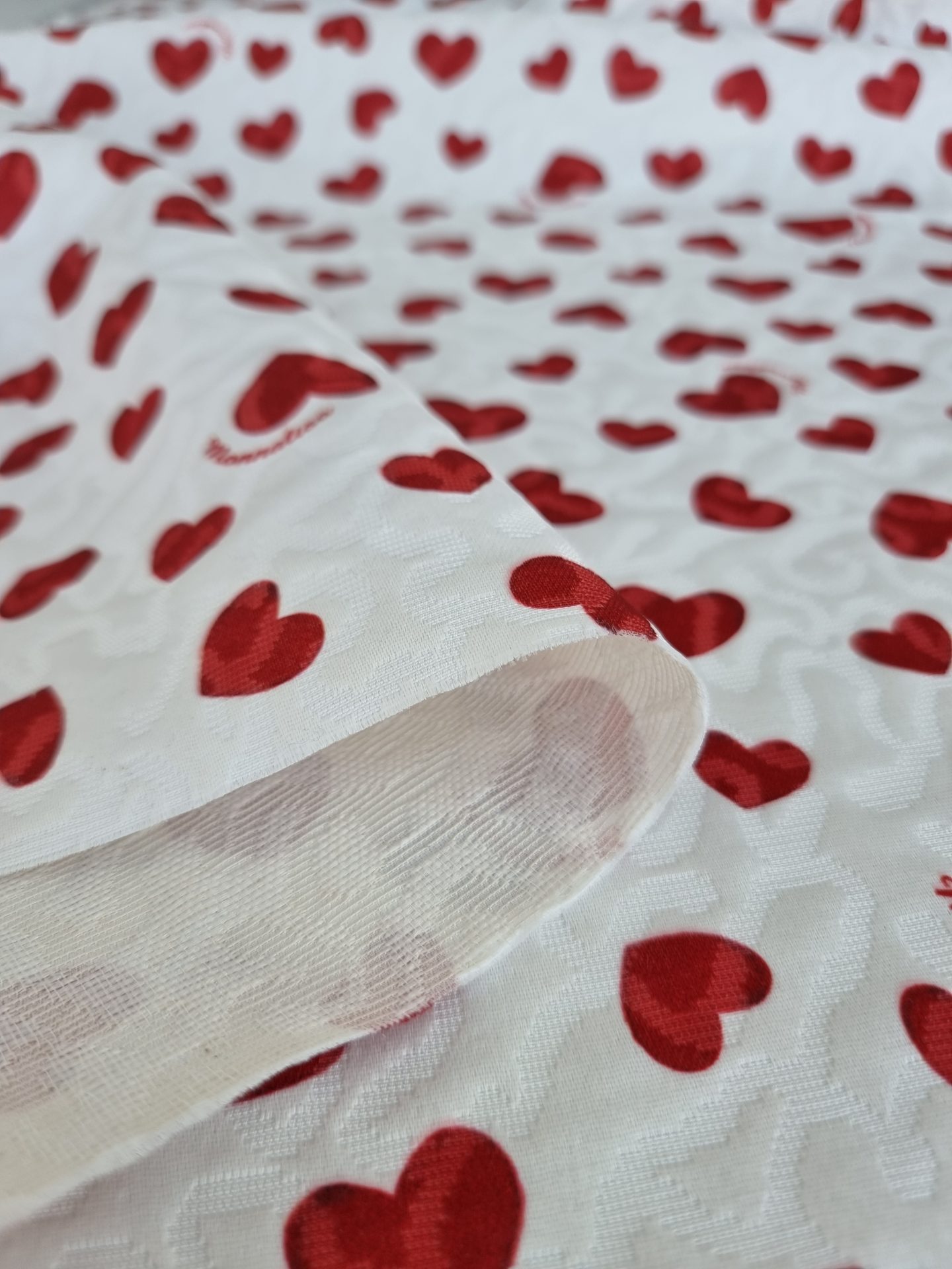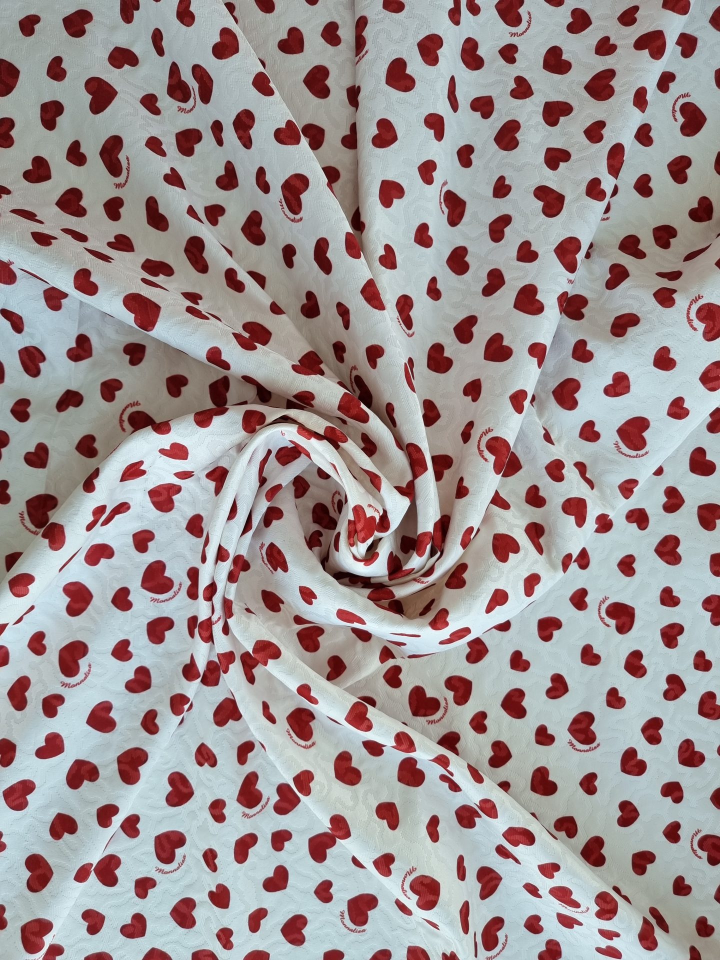 Brocard imprimat digital Red Hearts MNL646, cu bumbac si vascoza, fara elastan.