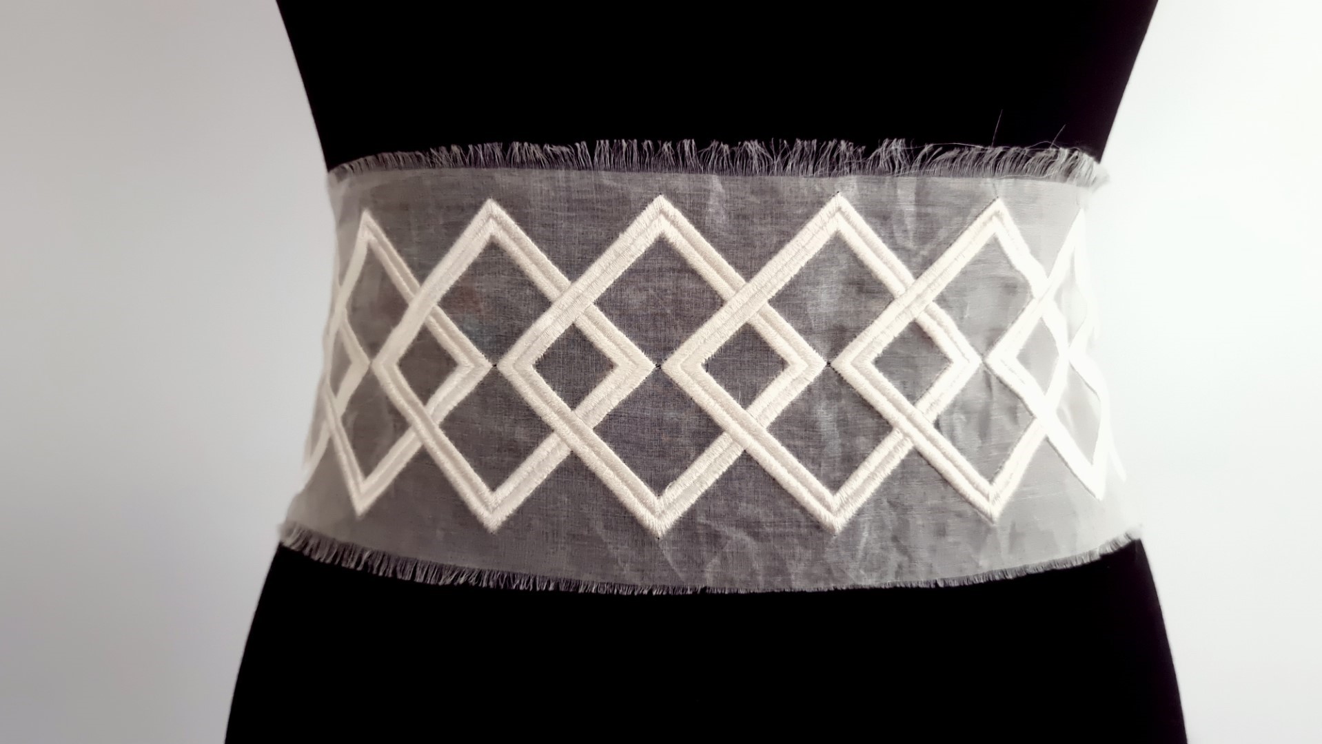 Banda decorativa din organza brodata CARLO841, material textil subtire, usor, fin si transparent.