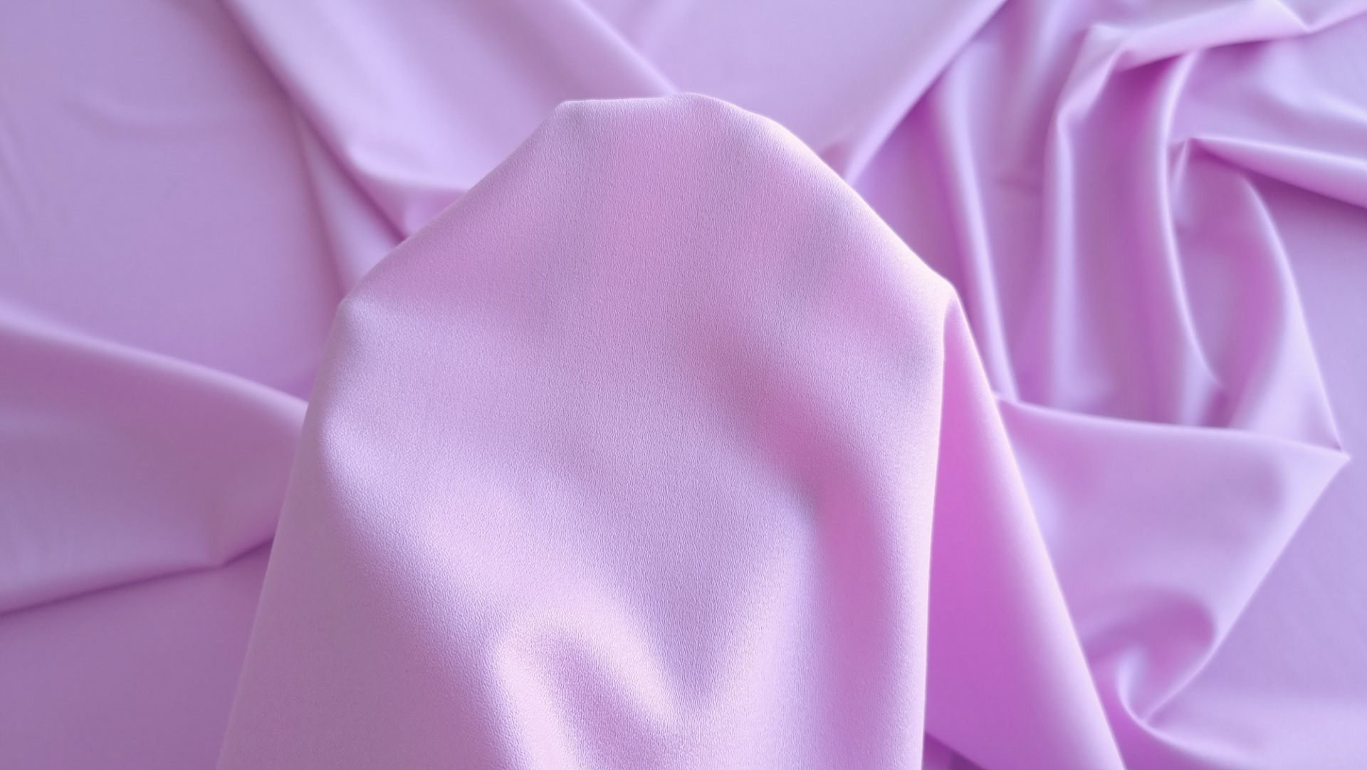 Crep din lana pale lilac Tollegno, material textil cu textura fluida, asemanatoare unui triplu voal, fara elastan, foarte placut la atingere, calitate ireprosabila, produs in Italia, de celebra fabrica Tollegno, cu istorie de peste 120 ani in industria fashion.