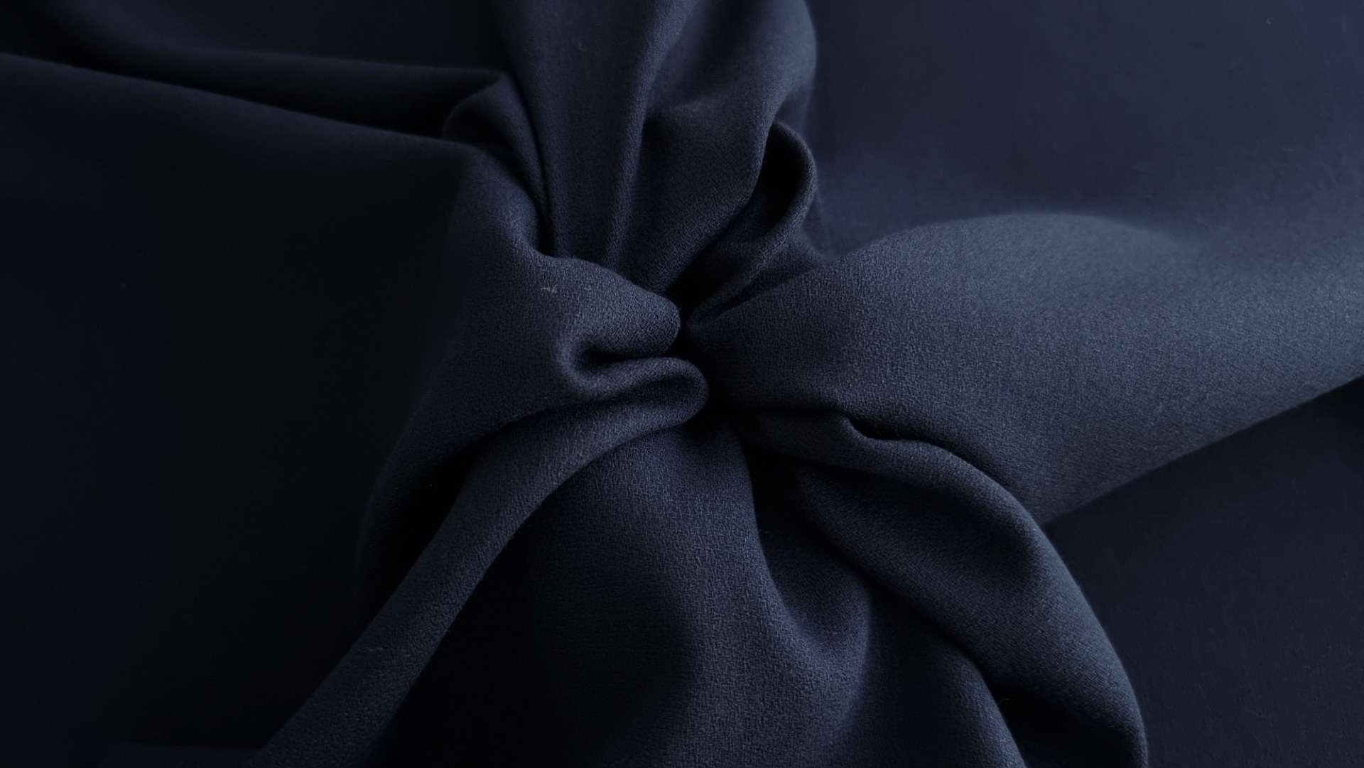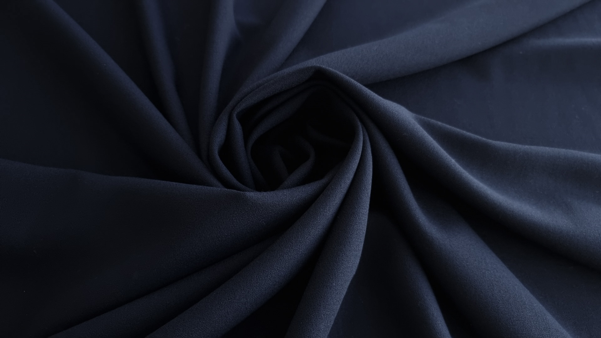 Crep bleumarin din lana 100%, fara elastan, material textil cu textura fluida.