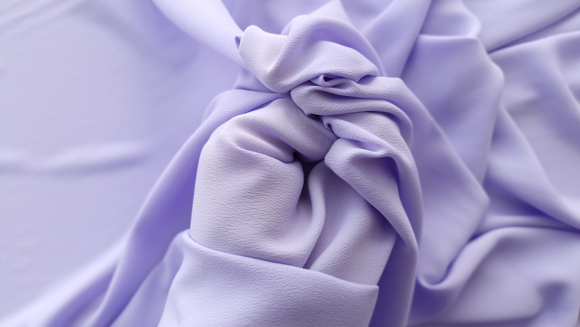 Crepe de Chine elastic cu matase naturala mov lila, cu textura vaporoasa, delicata si cu aspect pretios. Este o tesatura cu cadere, pretabila pentru rochii ample si vaporoase.