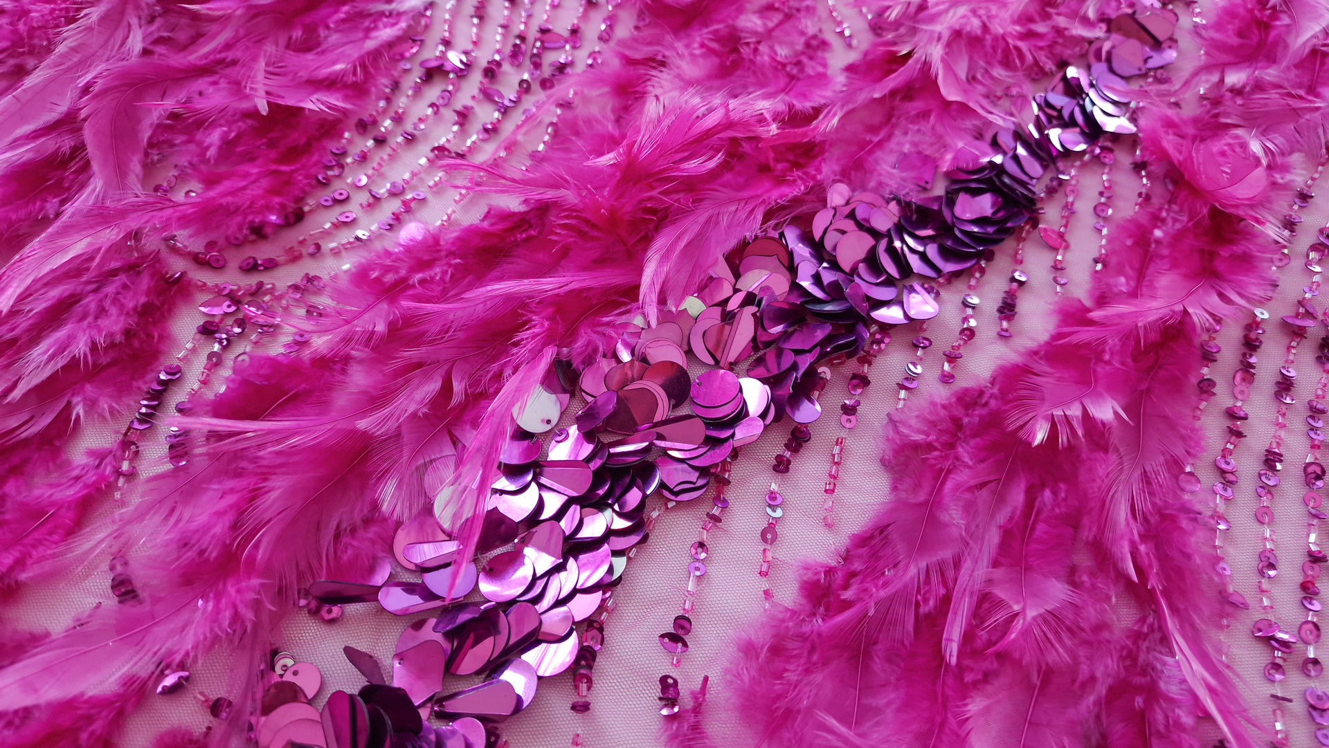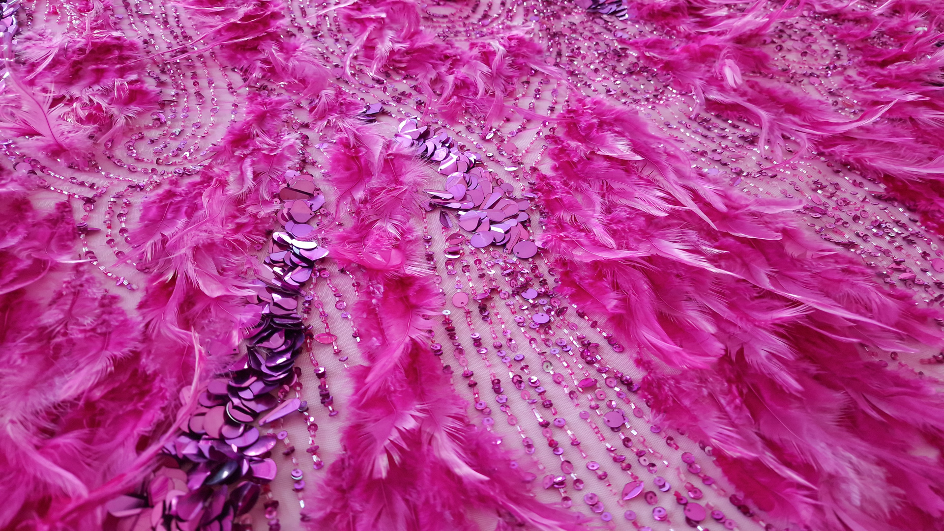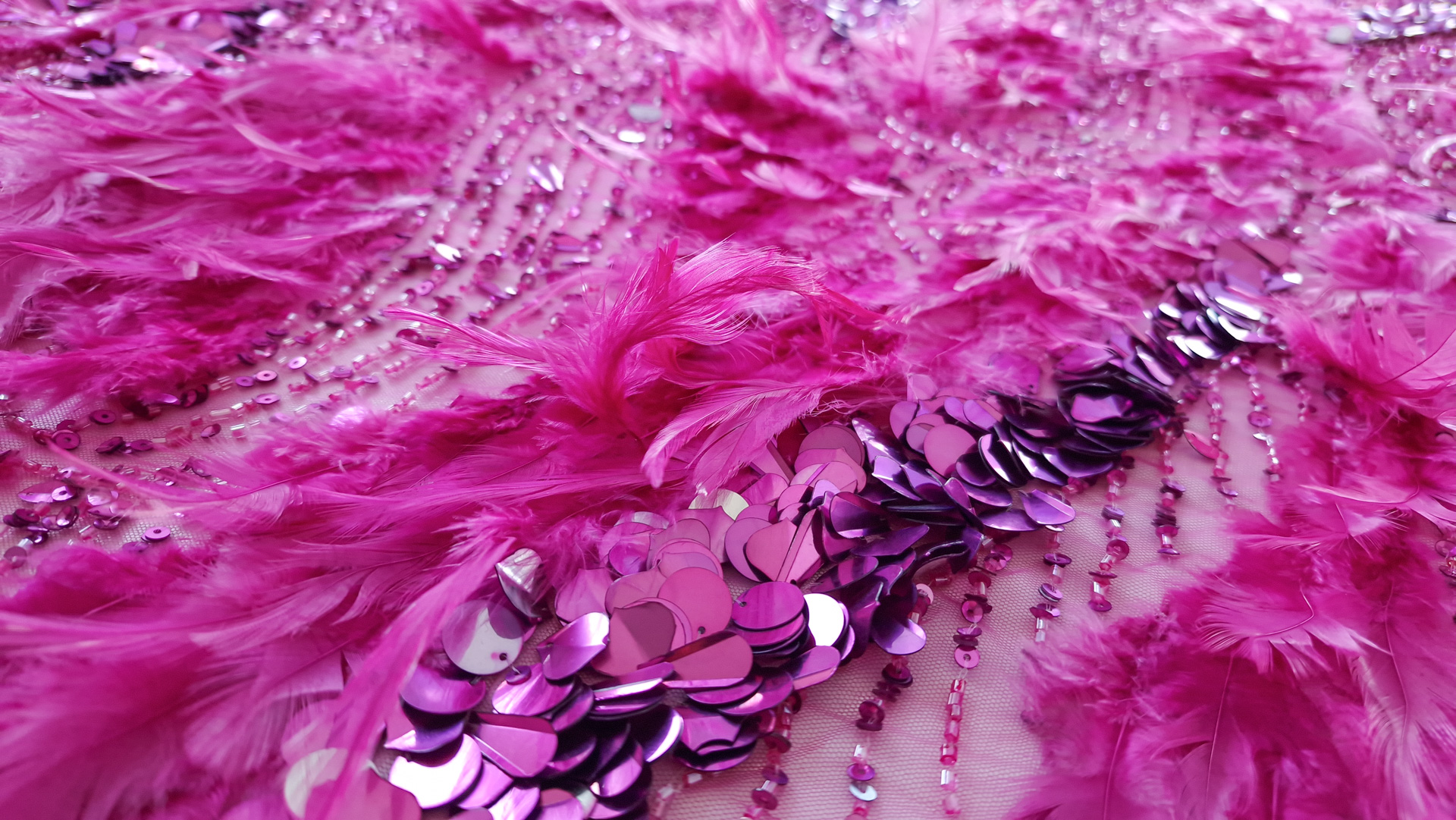 Broderie couture lucrata manual magenta , cu paiete, mărgele, micropaiete și fulgi naturali, toate cusute manual pe tulle usor elastic în aceeași nuanță. Fiecare detaliu al broderiei transformă orice ținută într-o operă de artă autentică. Paietele strălucesc delicat, captând lumina și creând reflexii care adaugă eleganță. Mărgelele, atent selectate și plasate, aduc o notă de rafinament și complexitate, în timp ce micropaietele adaugă o textură subtilă și sofisticată. Fulgii naturali, cusuti pe tulle-ul ușor elastic, aduc grație, conferind broderiei un aer eteric și de poveste. Această piesă emană feminitate și rafinament, fiind perfectă pentru ocazii speciale unde se dorește un look deosebit și memorabil.
