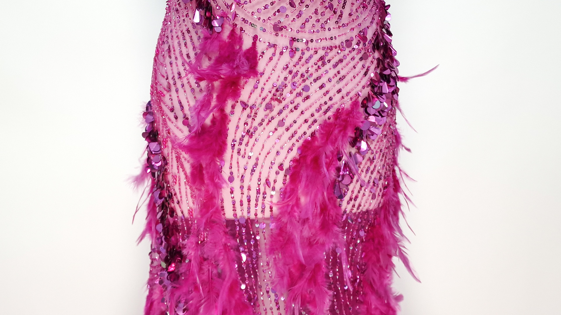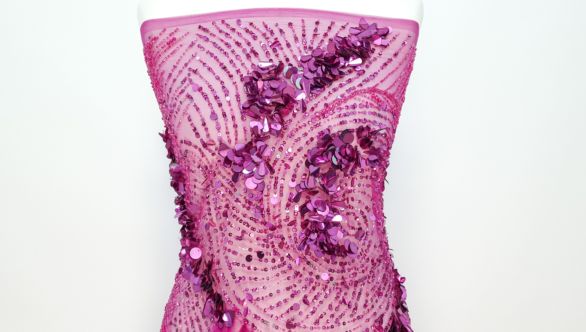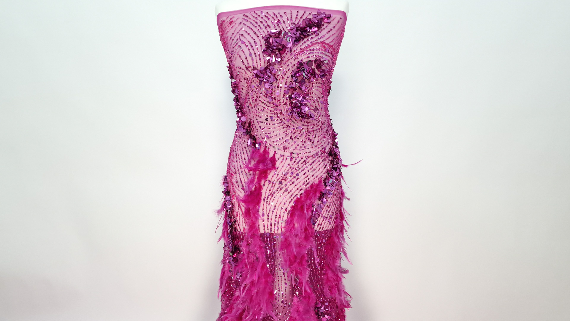 Broderie couture lucrata manual magenta , cu paiete, mărgele, micropaiete și fulgi naturali, toate cusute manual pe tulle usor elastic în aceeași nuanță. Fiecare detaliu al broderiei transformă orice ținută într-o operă de artă autentică. Paietele strălucesc delicat, captând lumina și creând reflexii care adaugă eleganță. Mărgelele, atent selectate și plasate, aduc o notă de rafinament și complexitate, în timp ce micropaietele adaugă o textură subtilă și sofisticată. Fulgii naturali, cusuti pe tulle-ul ușor elastic, aduc grație, conferind broderiei un aer eteric și de poveste. Această piesă emană feminitate și rafinament, fiind perfectă pentru ocazii speciale unde se dorește un look deosebit și memorabil.