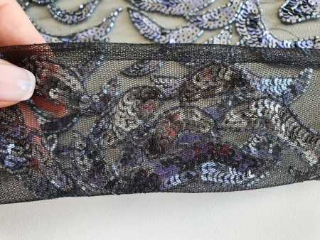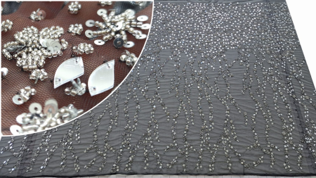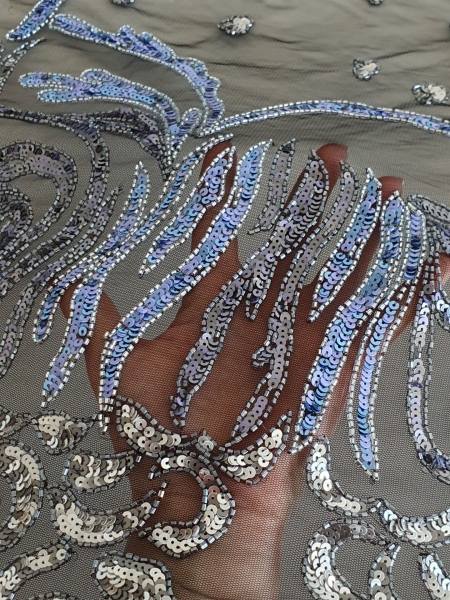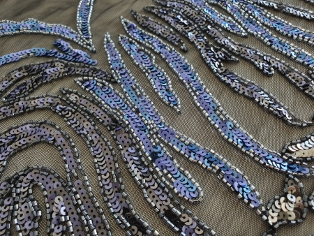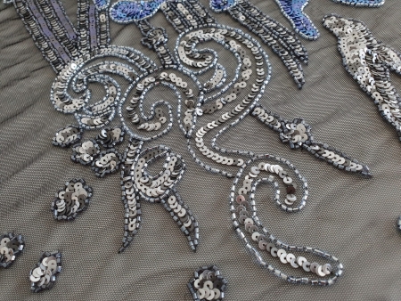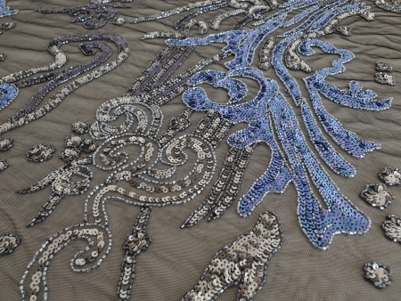 Broderie couture royal blue design Elie Saab, lucrata 100% manual din margele si paiete in tonuri de argintiu, albastru royal, albastru indigo si antracit.
