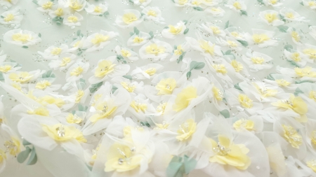 Caracteristici Broderie accesorizata manual cu flori 3D: