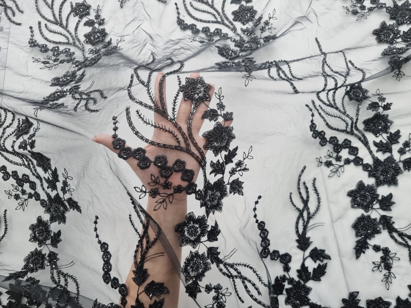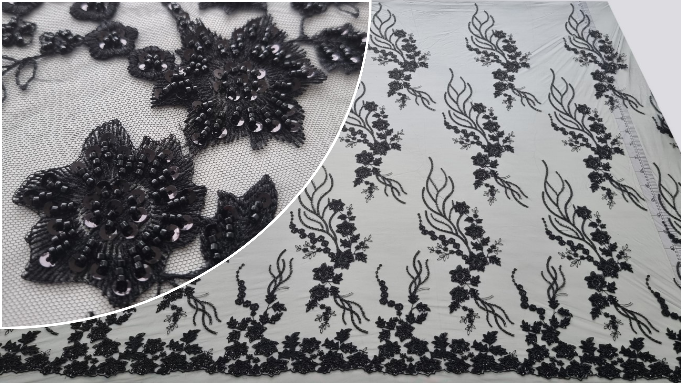 Caracteristici Broderie neagra accesorizata cu paiete si margele