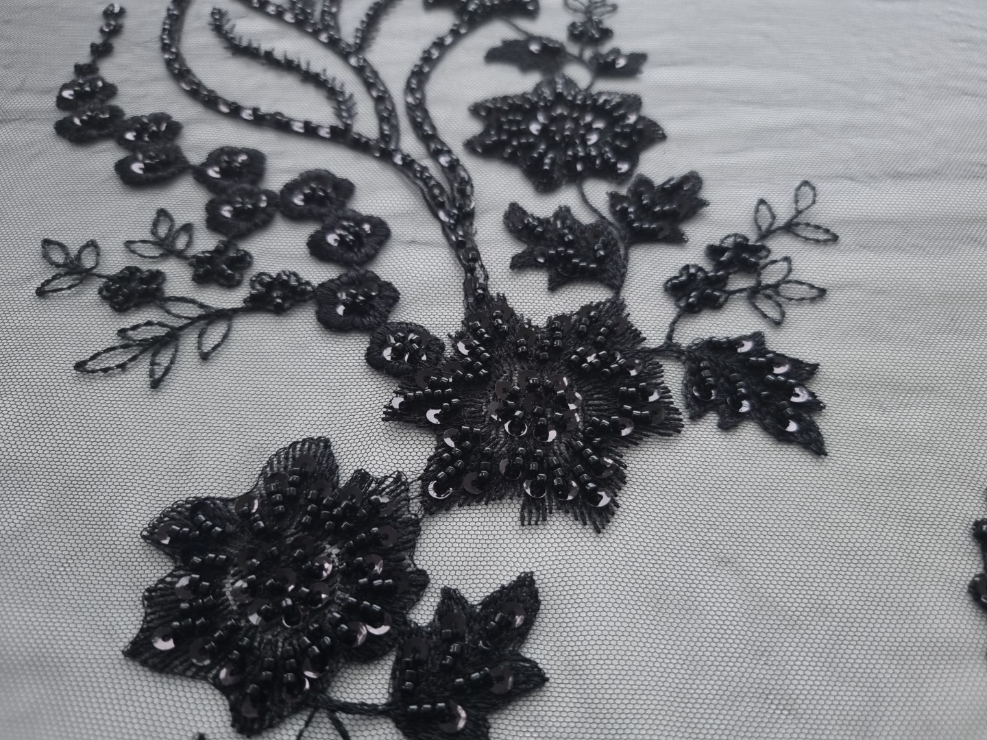 Broderie neagra accesorizata cu paiete si margele