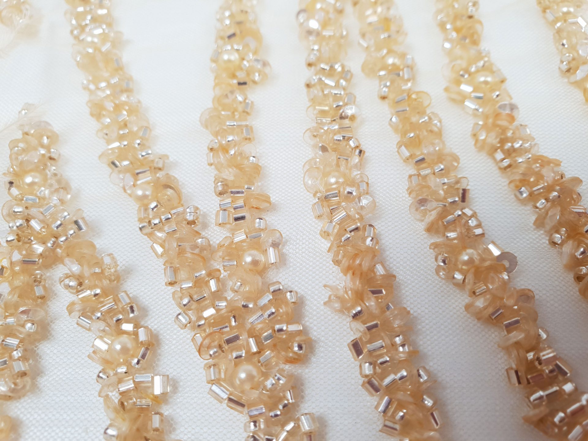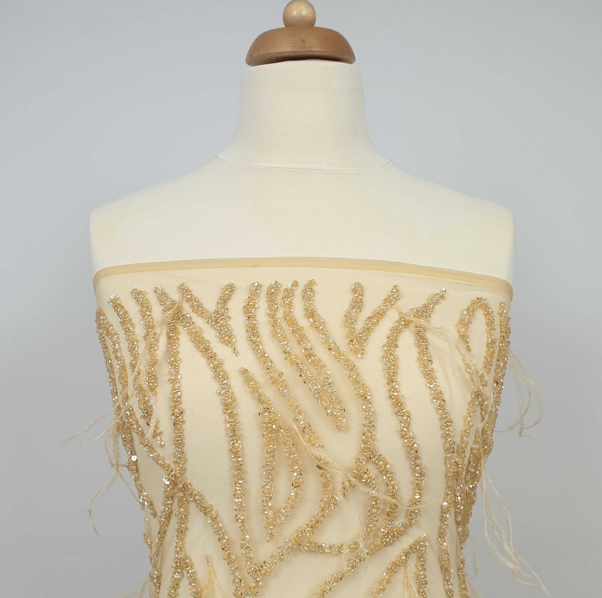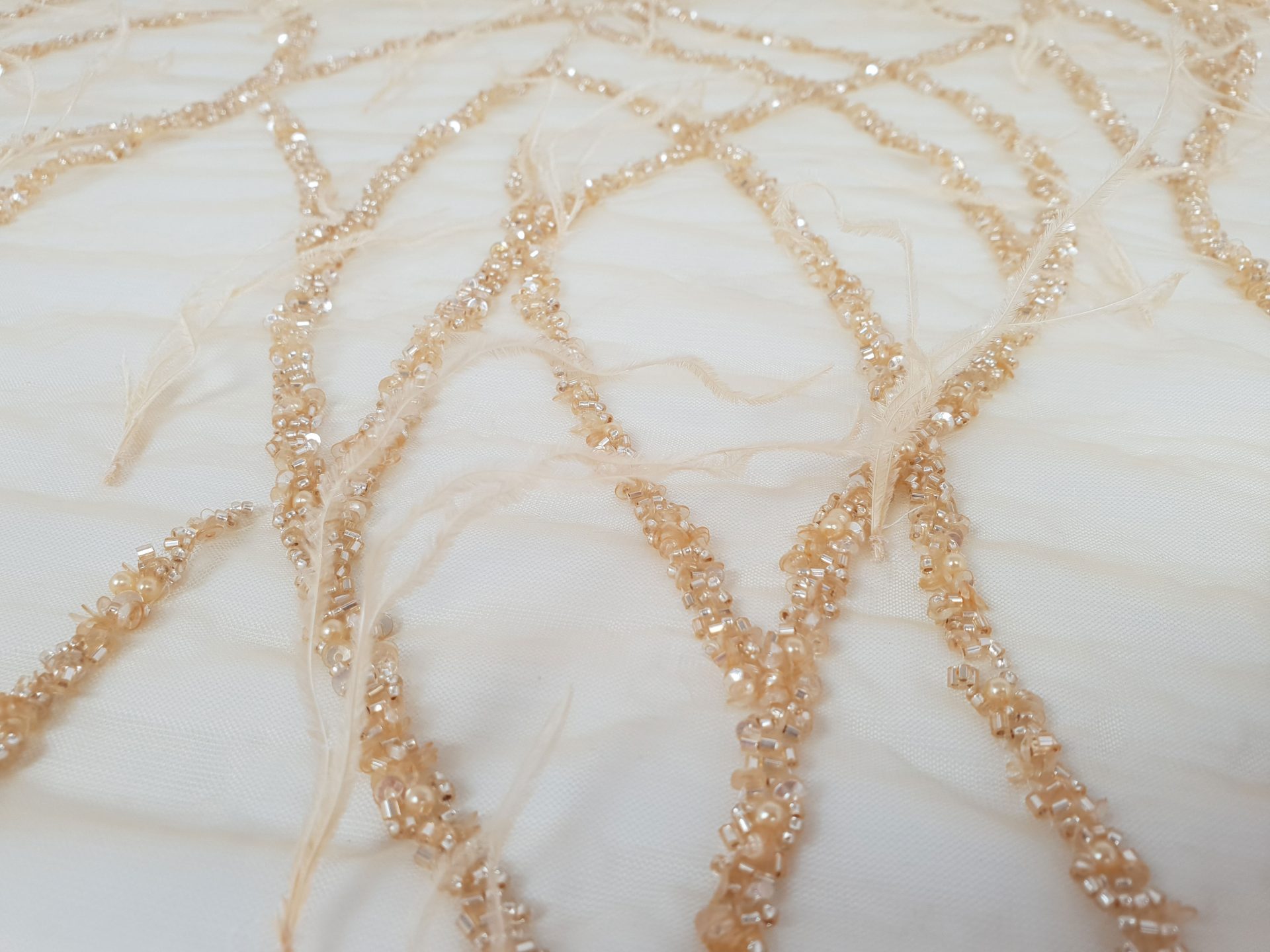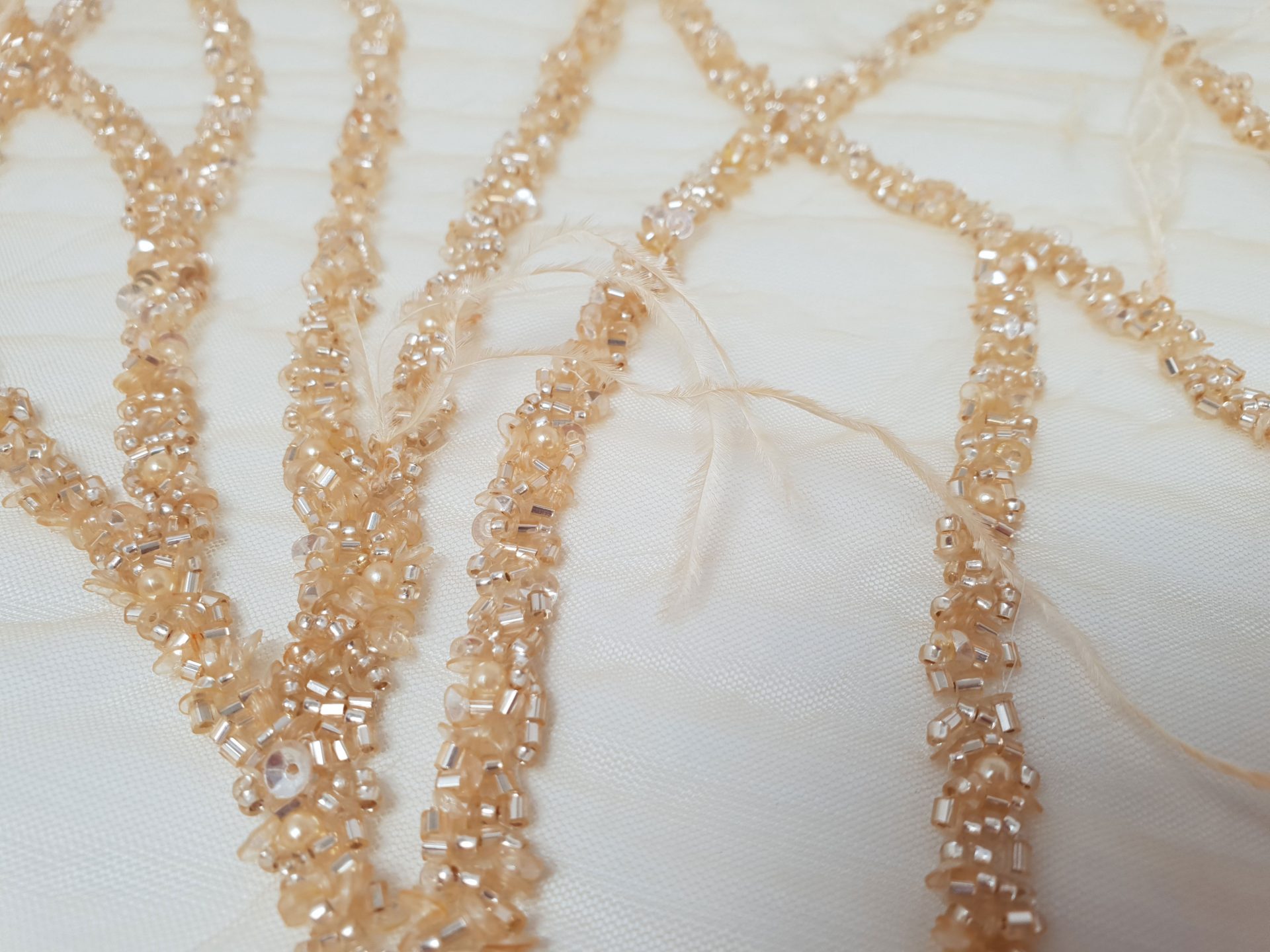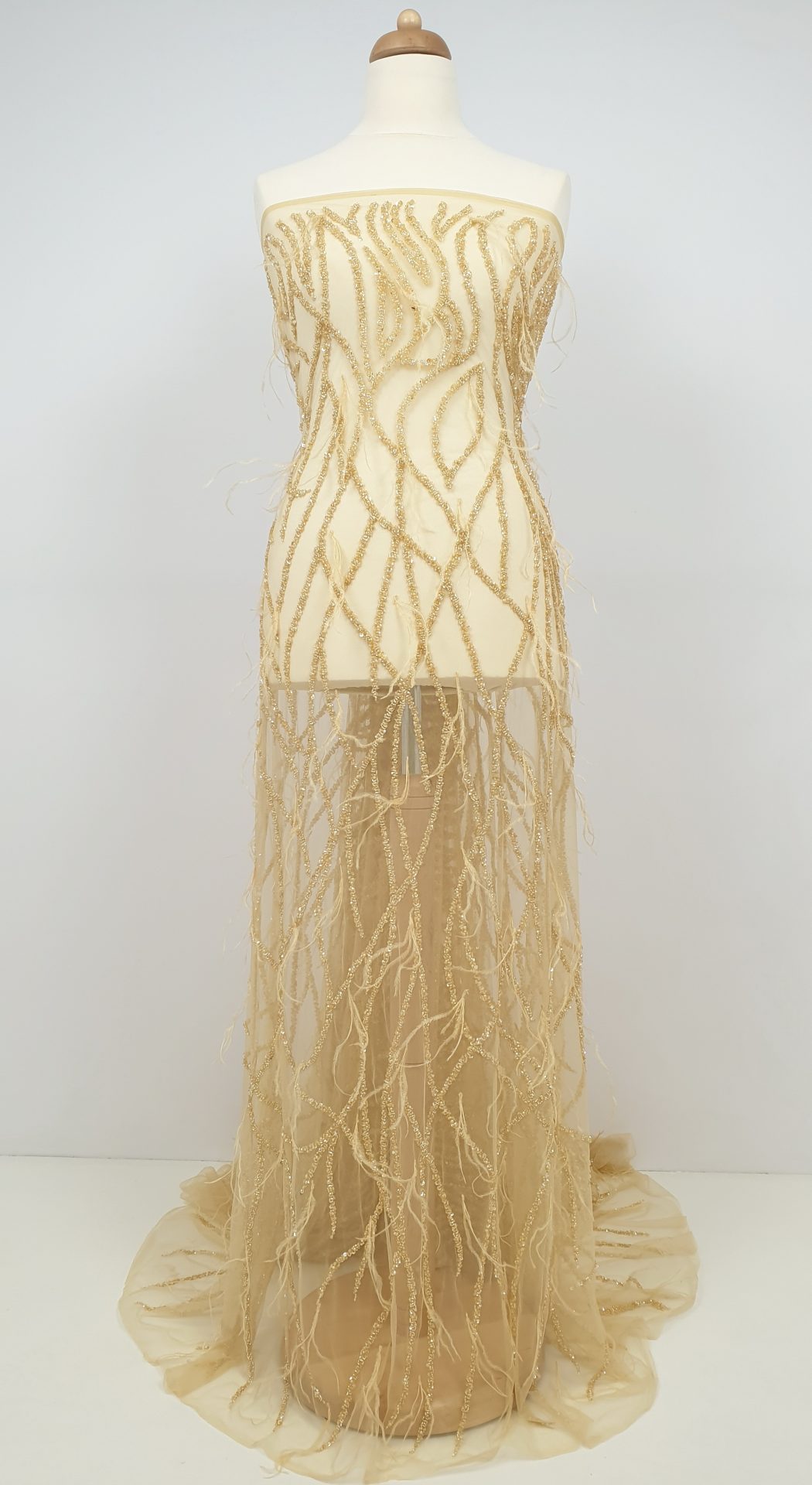 Caracteristici Broderie nude auriu cu fulgi naturali
