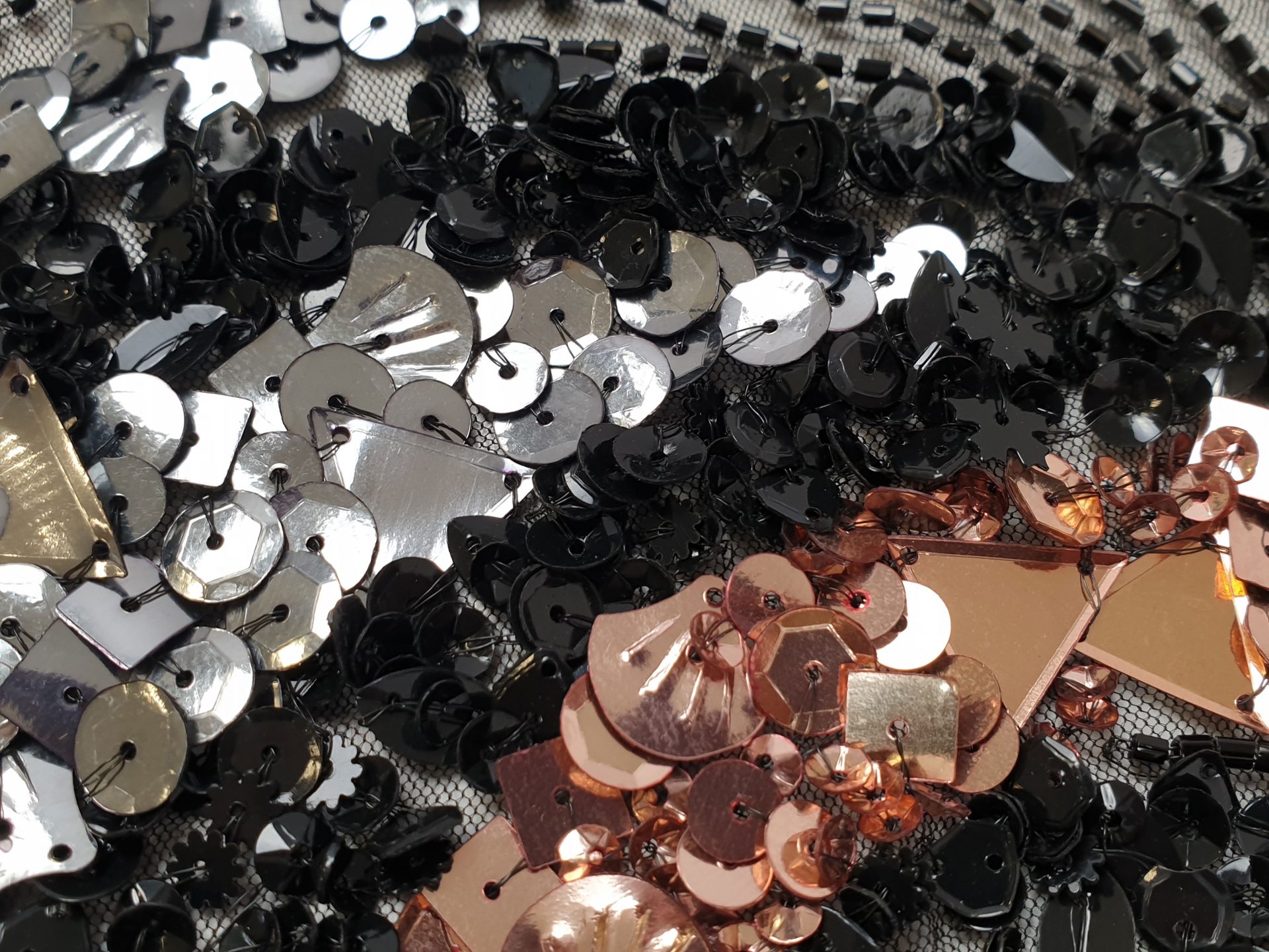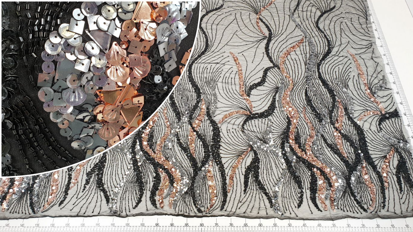 Culoare broderie: insertii aramiu, argintiu, negru