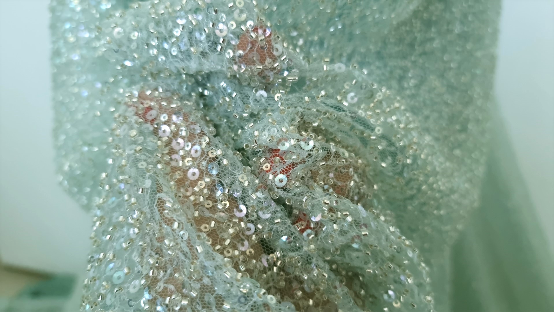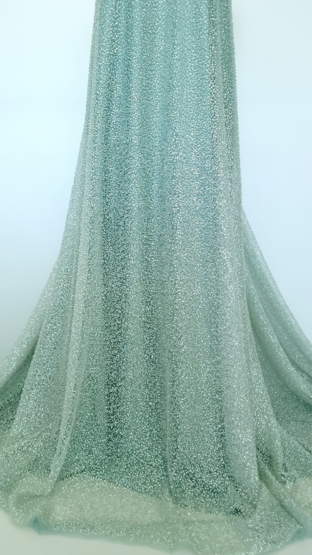 Modelul plin este distribuit pe intreaga suprafata a tulle-ului si este pretabil pentru realizarea unor tinute de efect pentru evenimentele de seara, pentru confectionarea rochiilor potrivite petrecerilor tip cocktail.