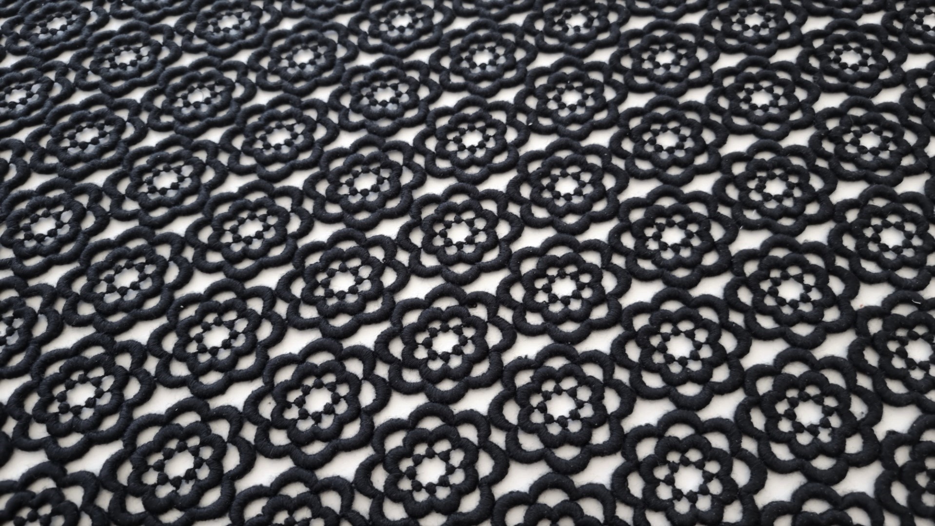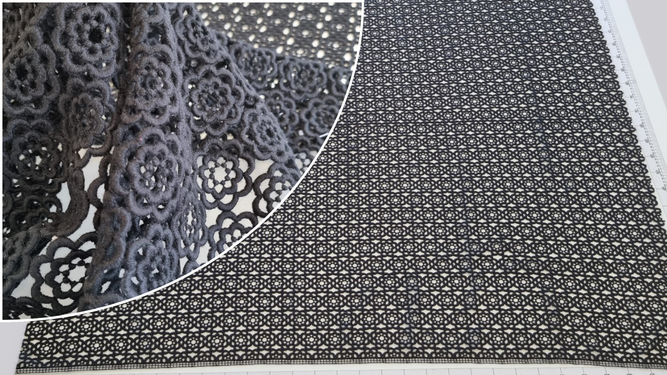 Caracteristici Broderie neagra sparta din lana si bumbac: