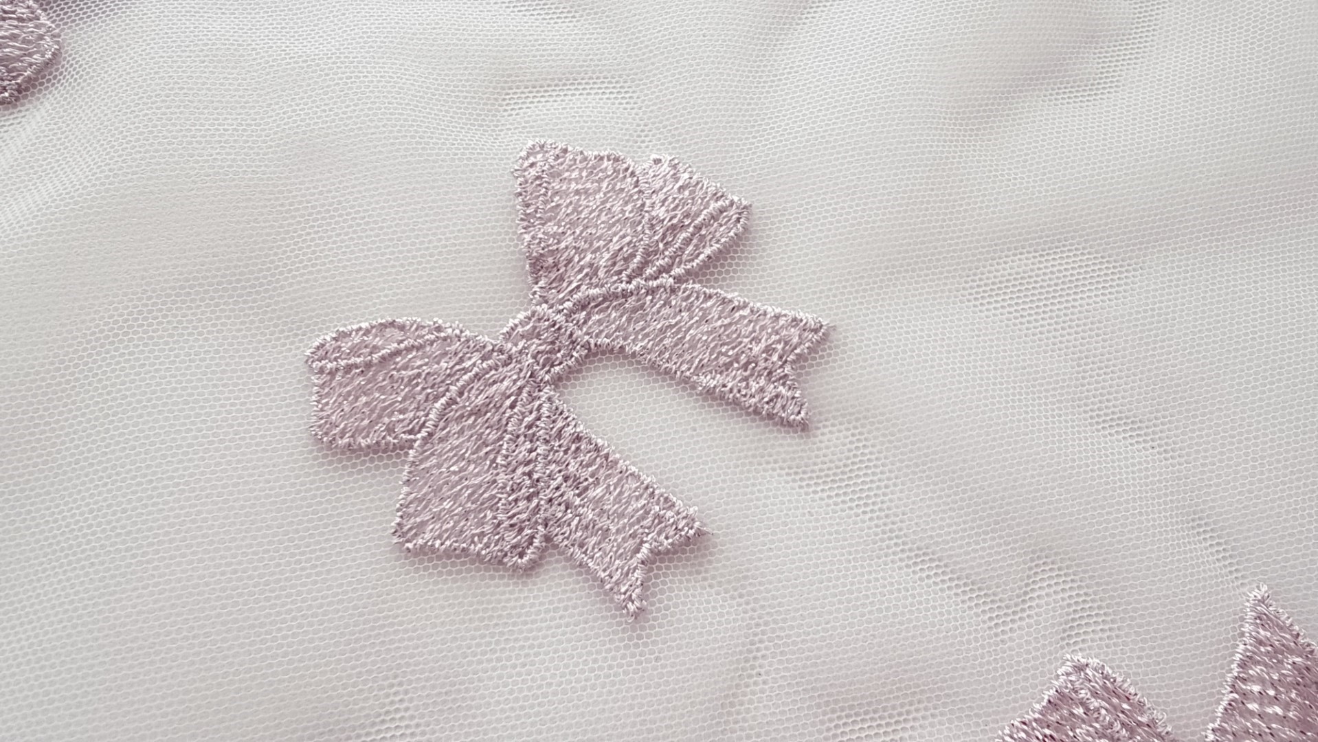 Caracteristici Embroidered Metallic Baby Pink Bows MNL1065: