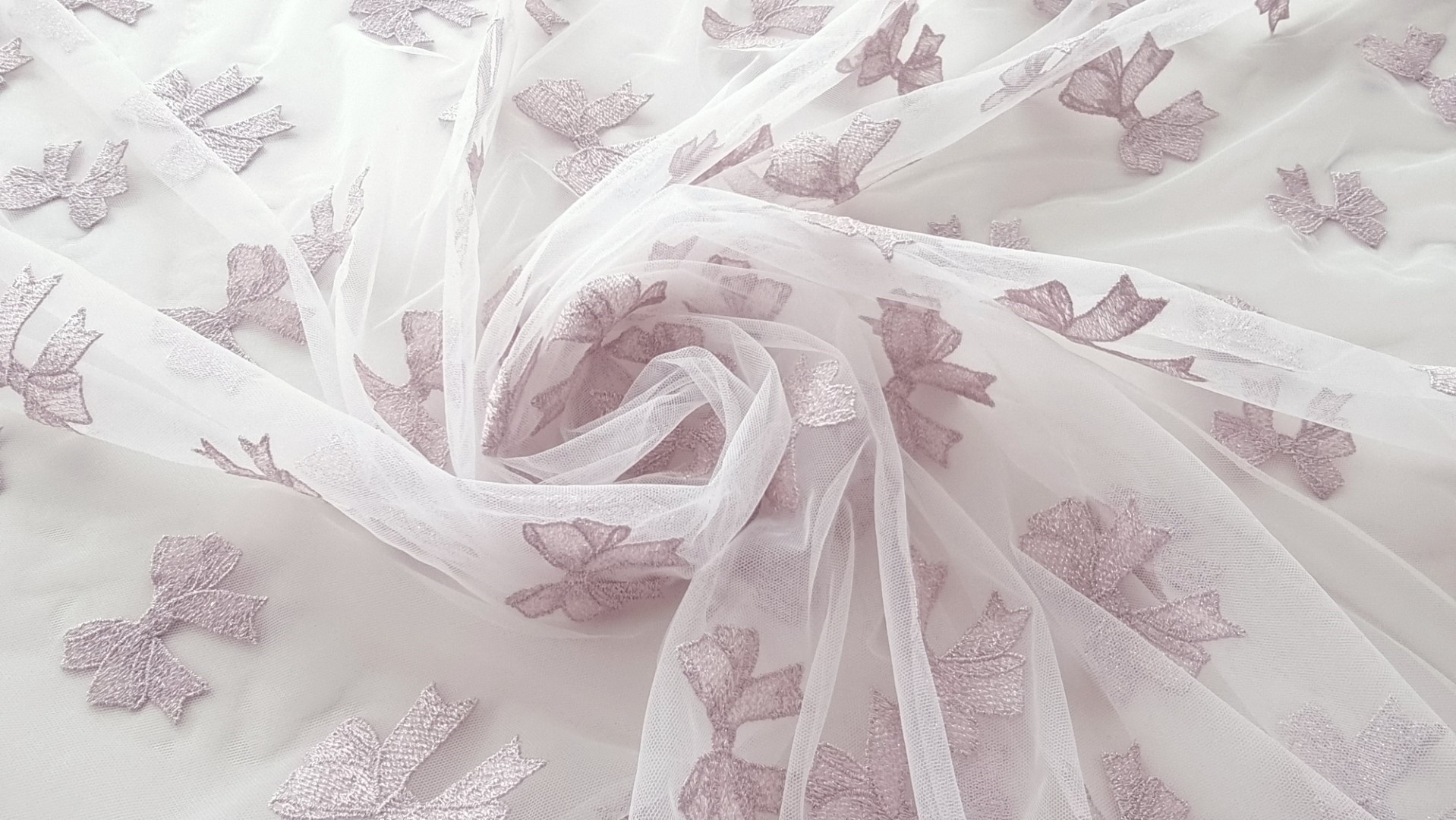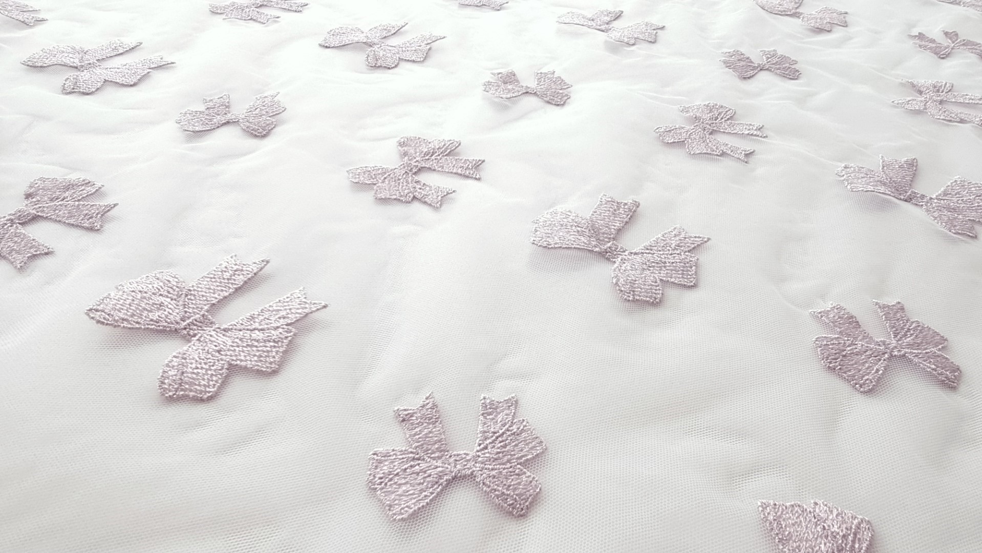 Embroidered Metallic Baby Pink Bows MNL1065 – fundite roz deschis brodate pe tulle.