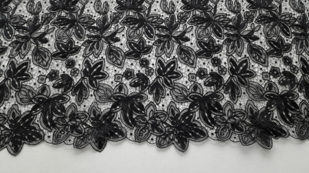 Dantela fina cu bordura neagra, ideală pentru rochii memorabile de mireasă, rochii de ocazie sau fuste, această broderie adaugă un feminitate fiecărei ținute. Modelul abstract atent realizat creează un design unic, ce atrage privirile și oferă un look special. Se combină perfect cu mătase naturală, tafta, mikado sau crep, transformând orice idee într-o piesă vestimentară deosebită, plină de stil și personalitate. Vă invităm să ne urmăriți și pe rețelele de socializare pentru a rămâne informați cu privire la ultimele noastre actualizări, oferte exclusive și surse de inspirație. Alăturați-vă comunității noastre online pe Facebook și Instagram. Vă așteptăm cu drag!