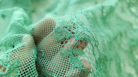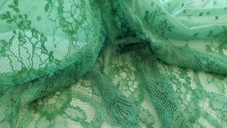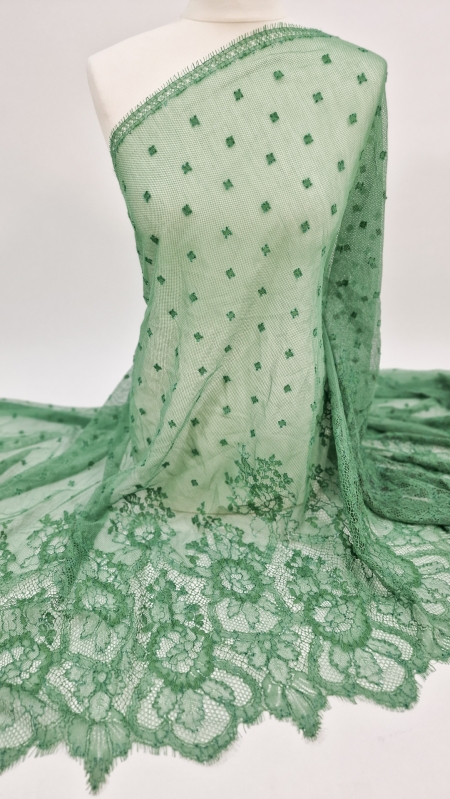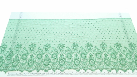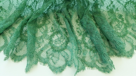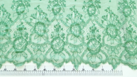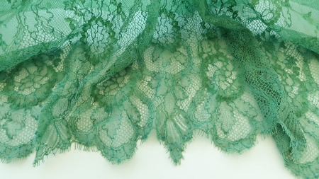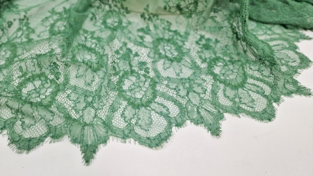 Dantela frantuzeasca Solstiss cu lana si bumbac verde, subtire, fine, calitate inalta.