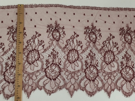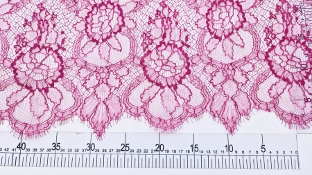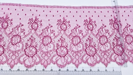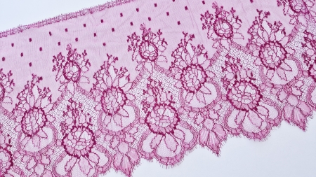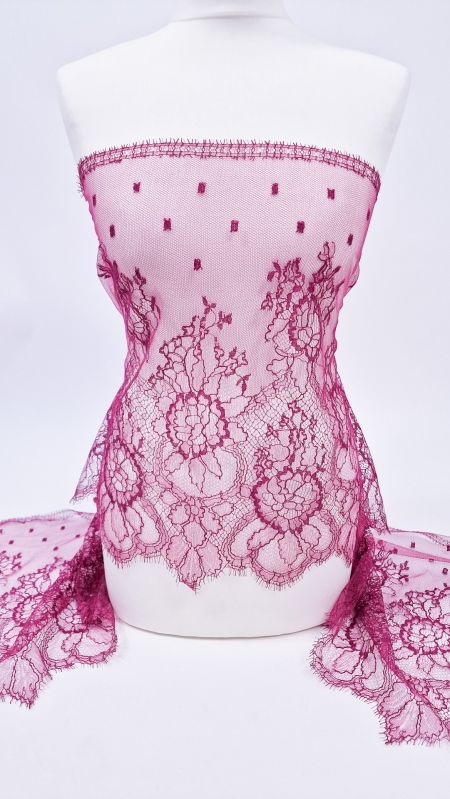 Dantela frantuzeasca Solstiss cu vascoza zmeurica, subtire, fine, calitate inalta.
